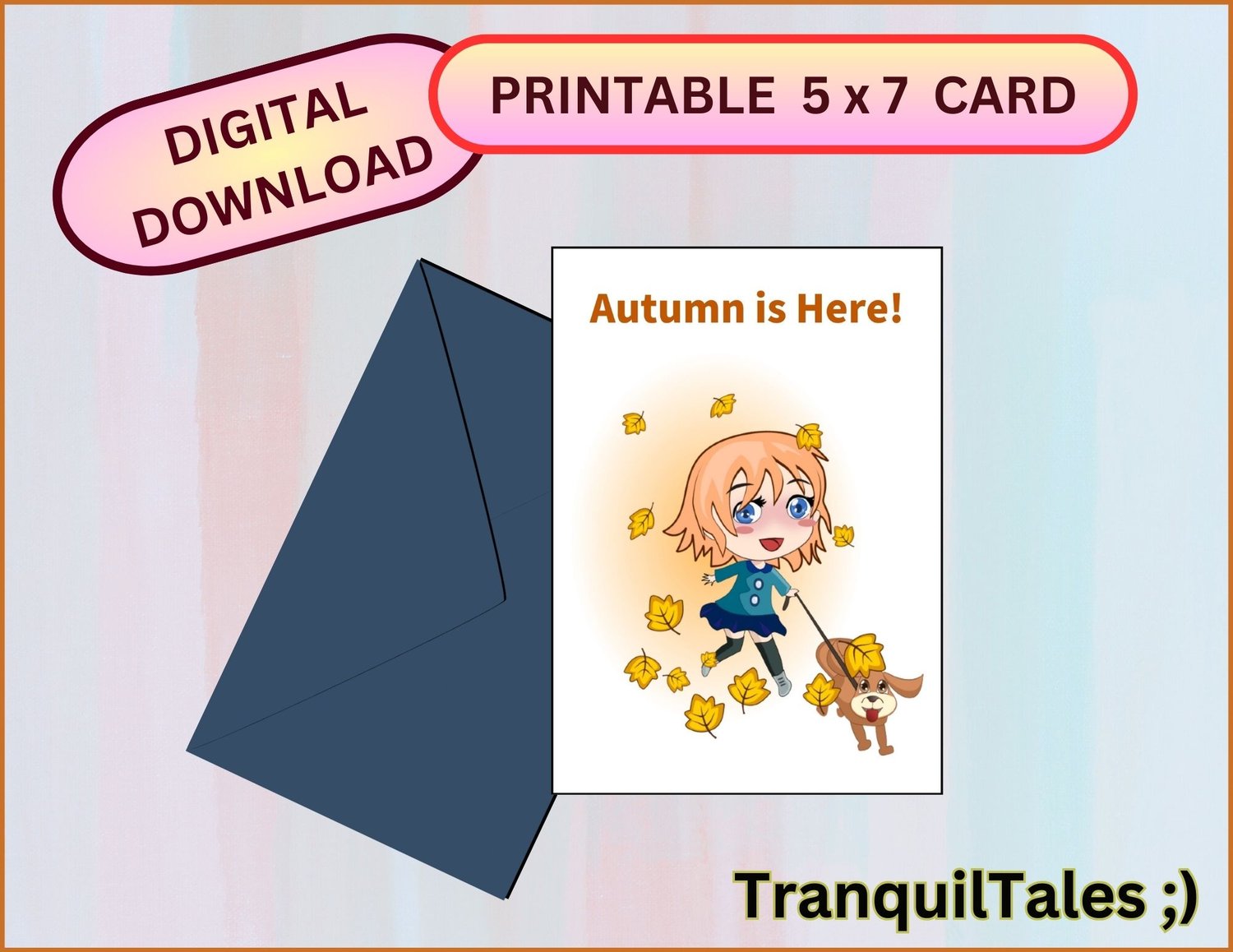 AUTUMN IS HERE CARD - 5" x 7" - PDF FILE - AUTUMN & FALL - THANKSGIVING SEASON