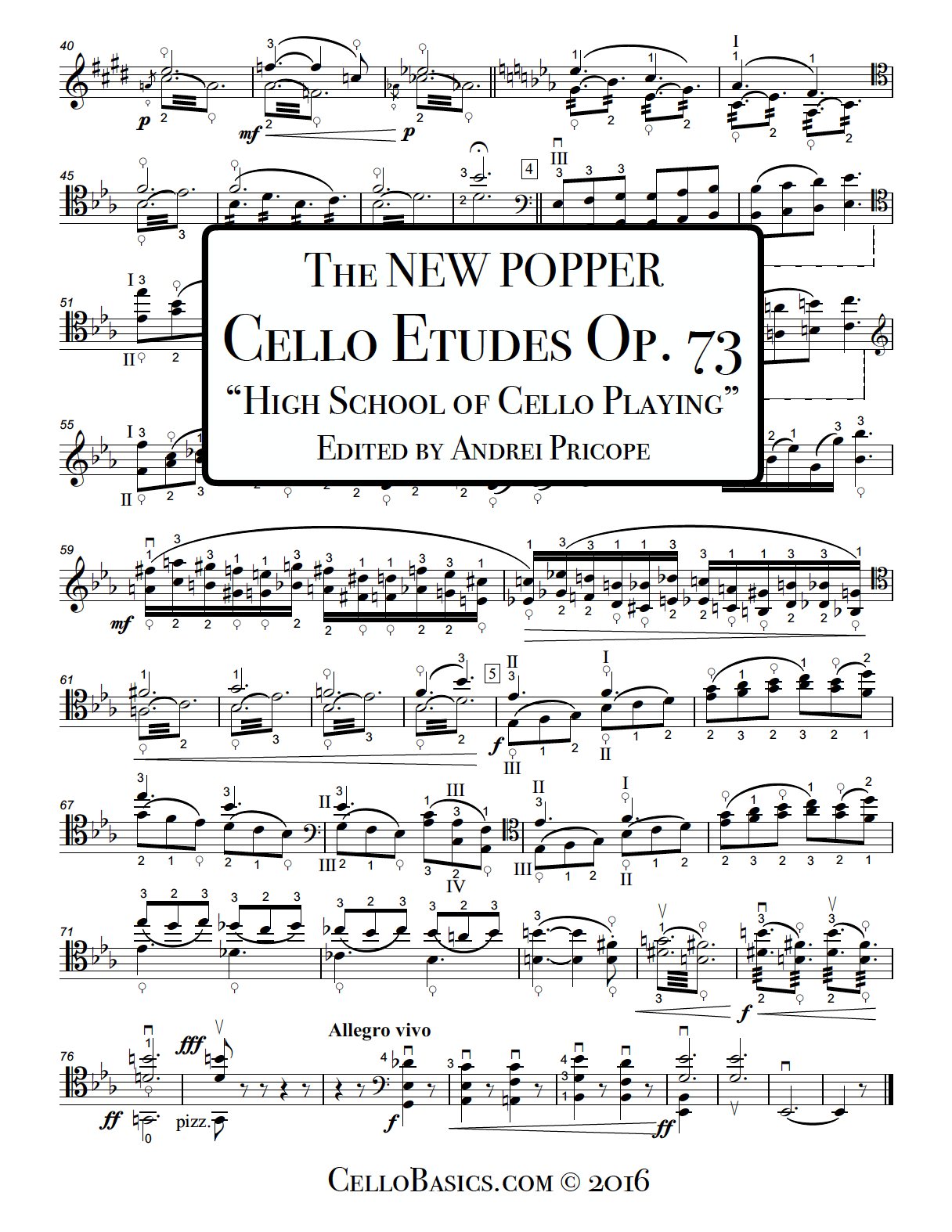 - simplified and effective fingerings in easy-to-read font, maintaining Popper's pedagogical intentions