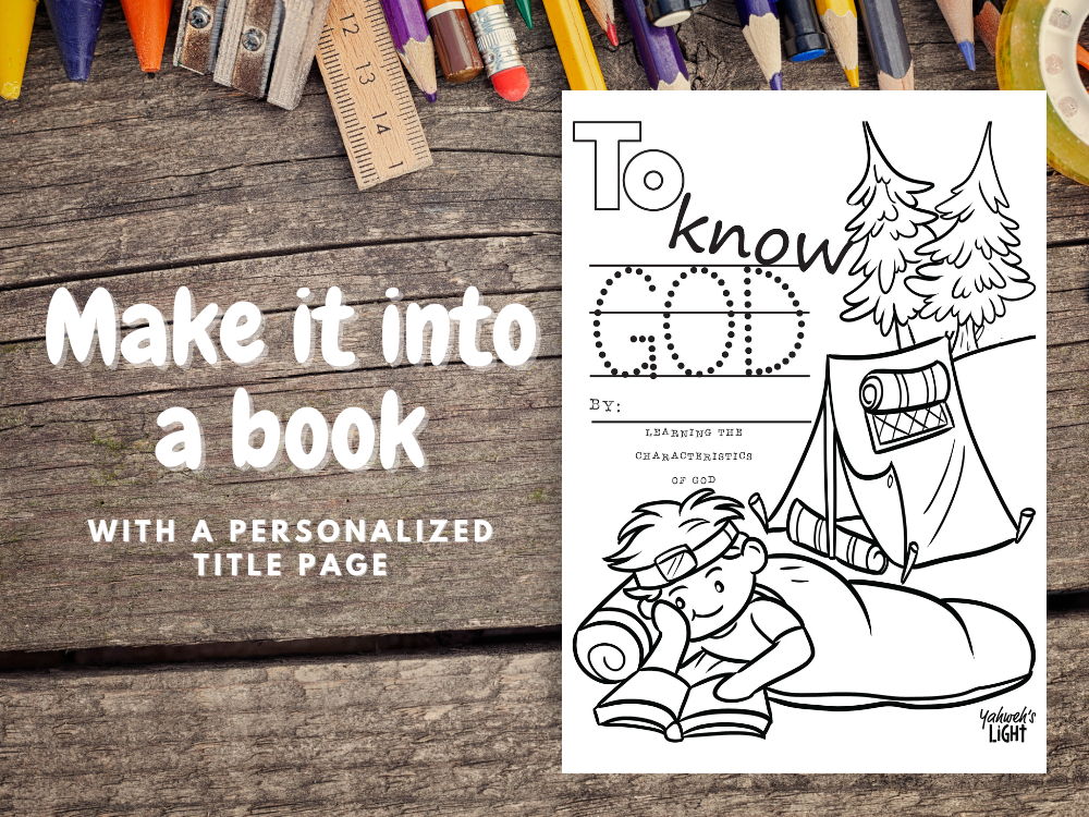 These pages give children the avenue to creatively learn and reflect on God’s personality through coloring, drawing, painting, or writing.