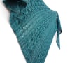 Twining columns of cables alternate with delicate lace in this asymmetrical triangular shawl that is bursting with texture.