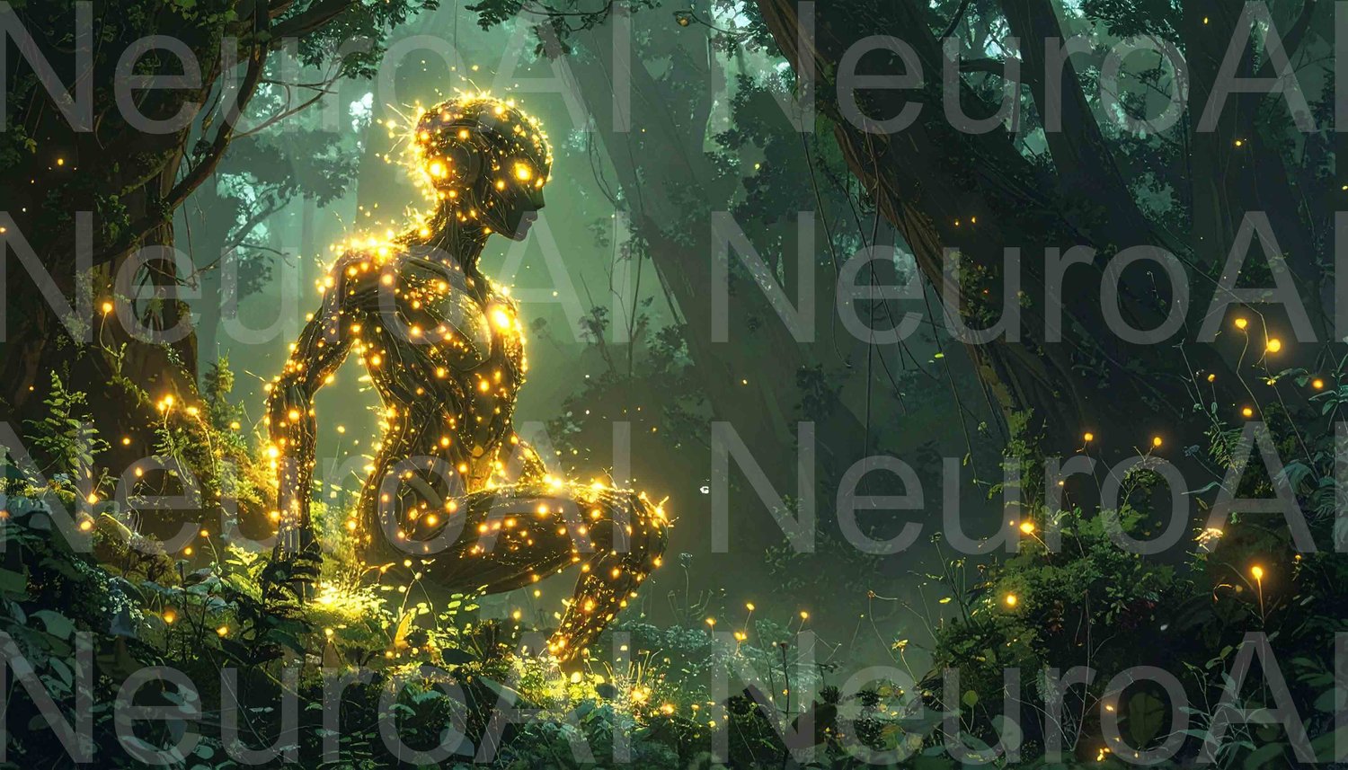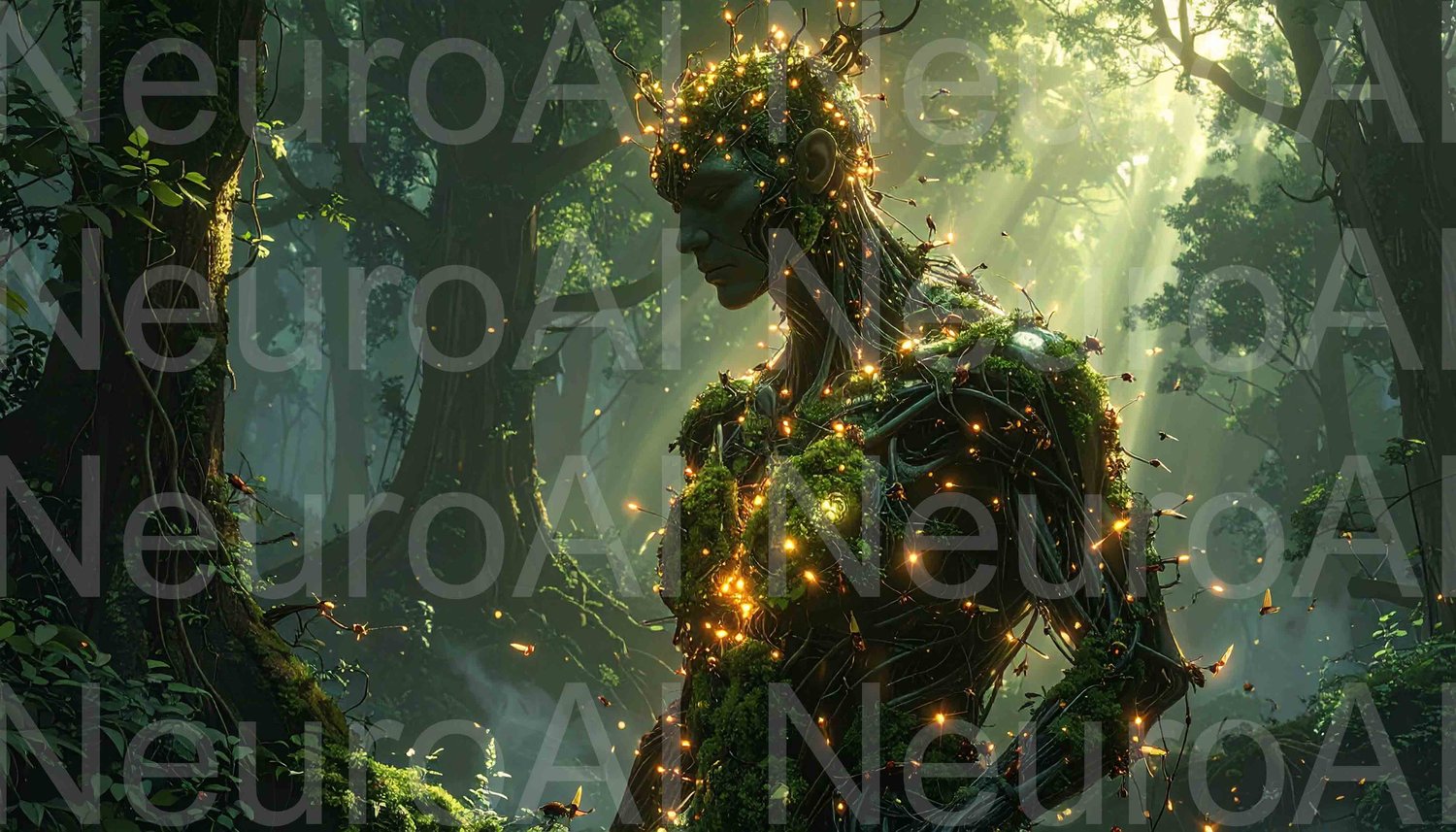 Glowing Forest Spirit Emerging in Enchanted Woodland Scene
