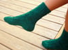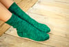 Sizes: 7½ (8, 8½, 9)” /19 (20.5, 21.5, 22.5) cm finished foot circumference; foot length and height customizable. It is recommended that socks be worn with 10% negative ease.