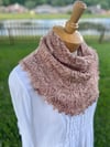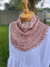 The Calinda Cowl is a perfect quick one-skein project! It starts with a flat triangle that is joined in the round to finish up the cowl. The center panel of beautiful leaf lace is flanked by columns that turn into leaves at the edge of the cowl. It’s easy to wear and styles like a shawlette with the simple rounded shaping. The edging is finished off with picots that make it dead simple to block!