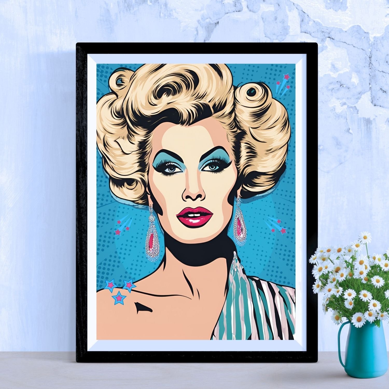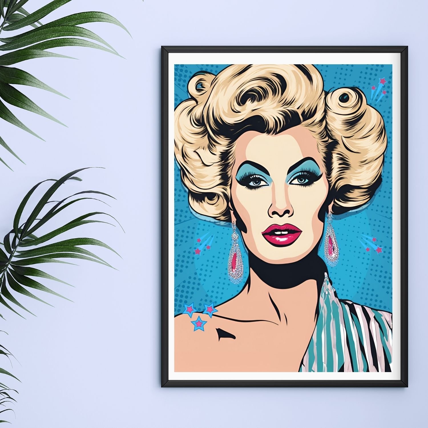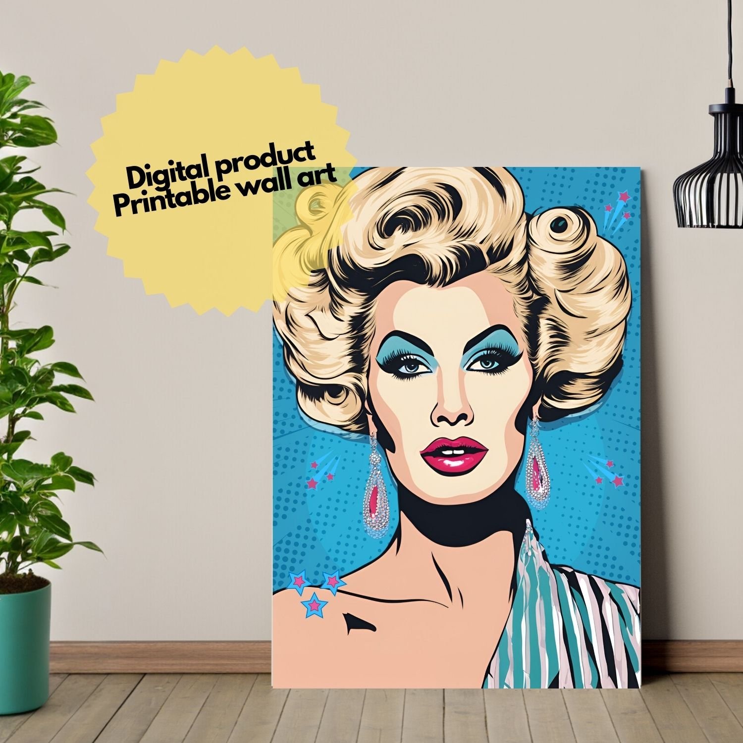 A digital file for printing; LGBT pop art wall decoration. Beauty drag queen pop art style decoration poster. Wall art printable LGBT creative art