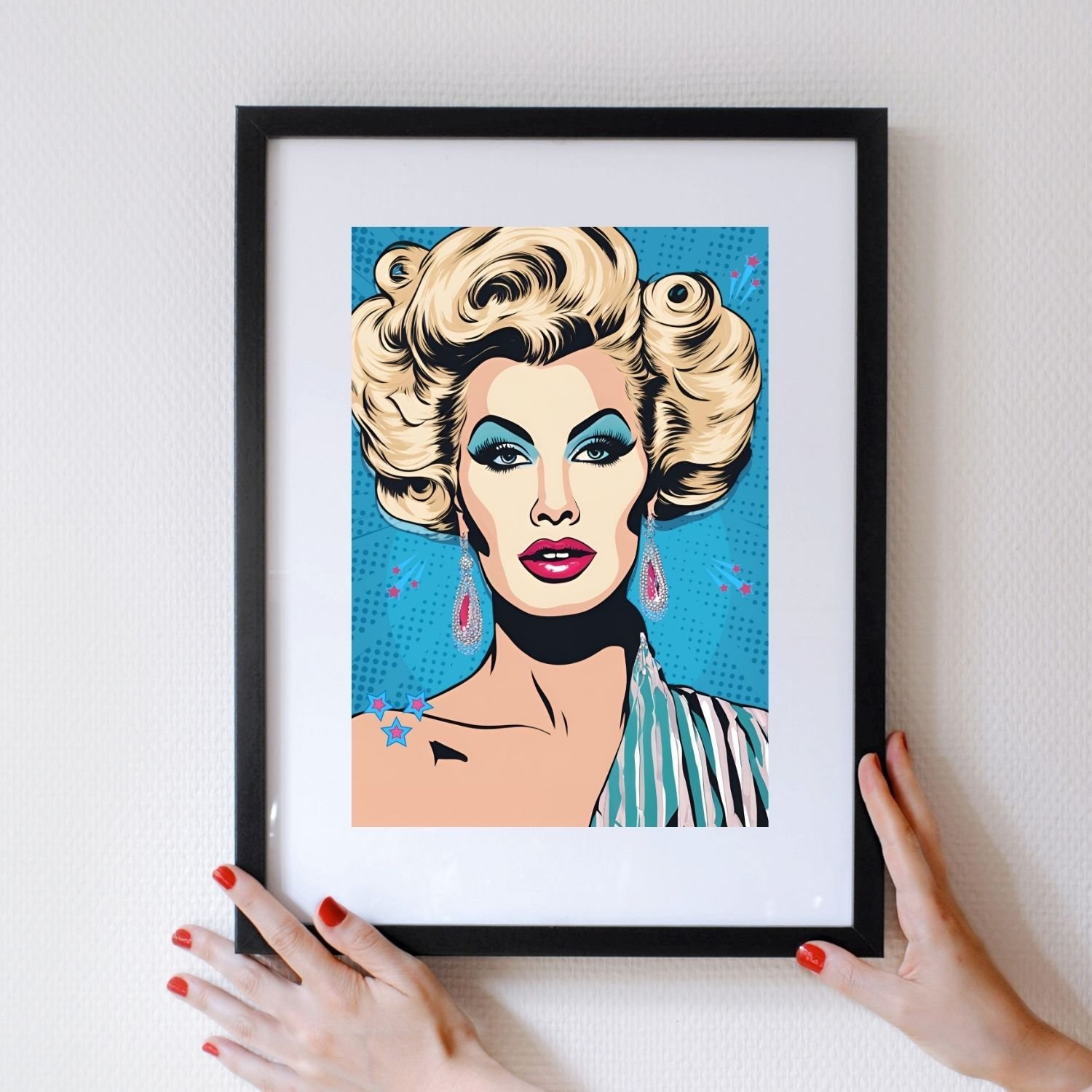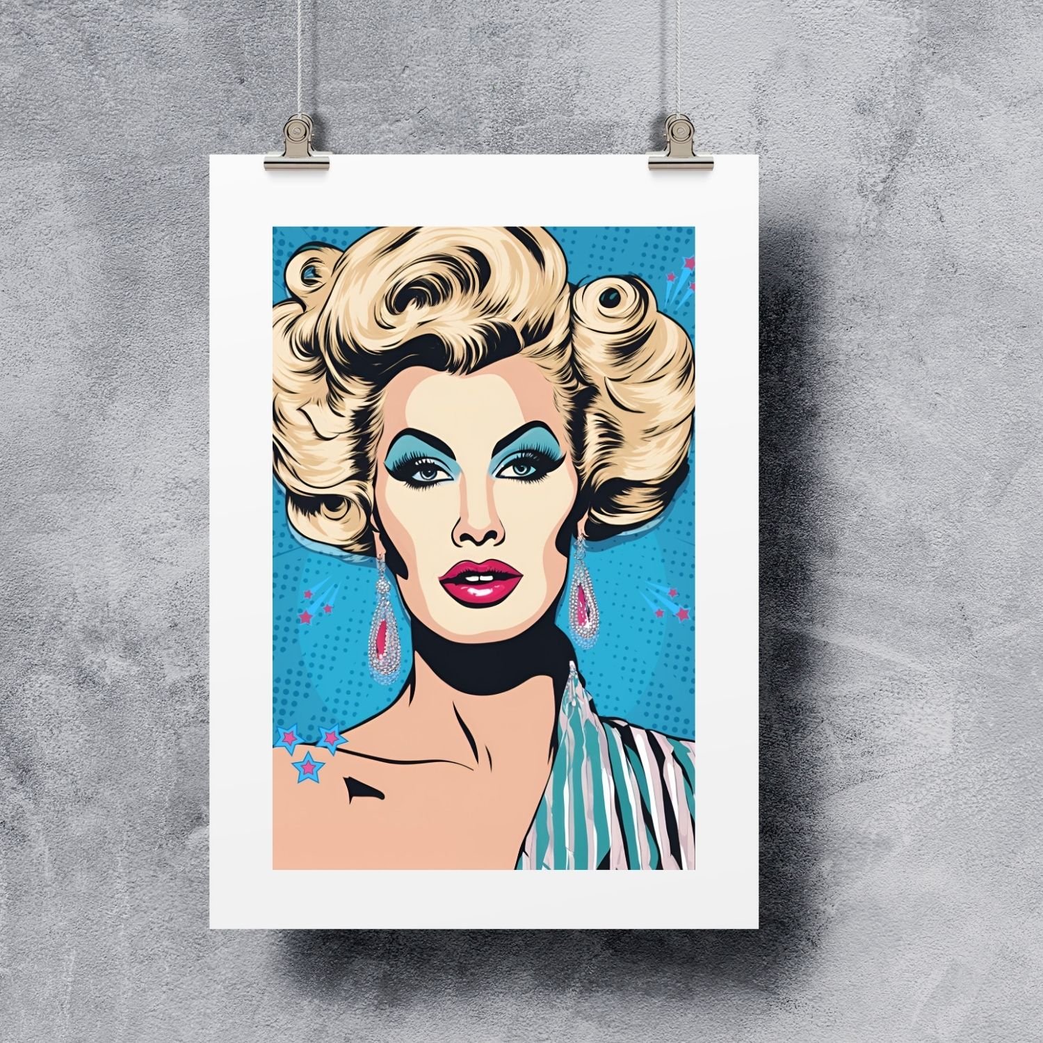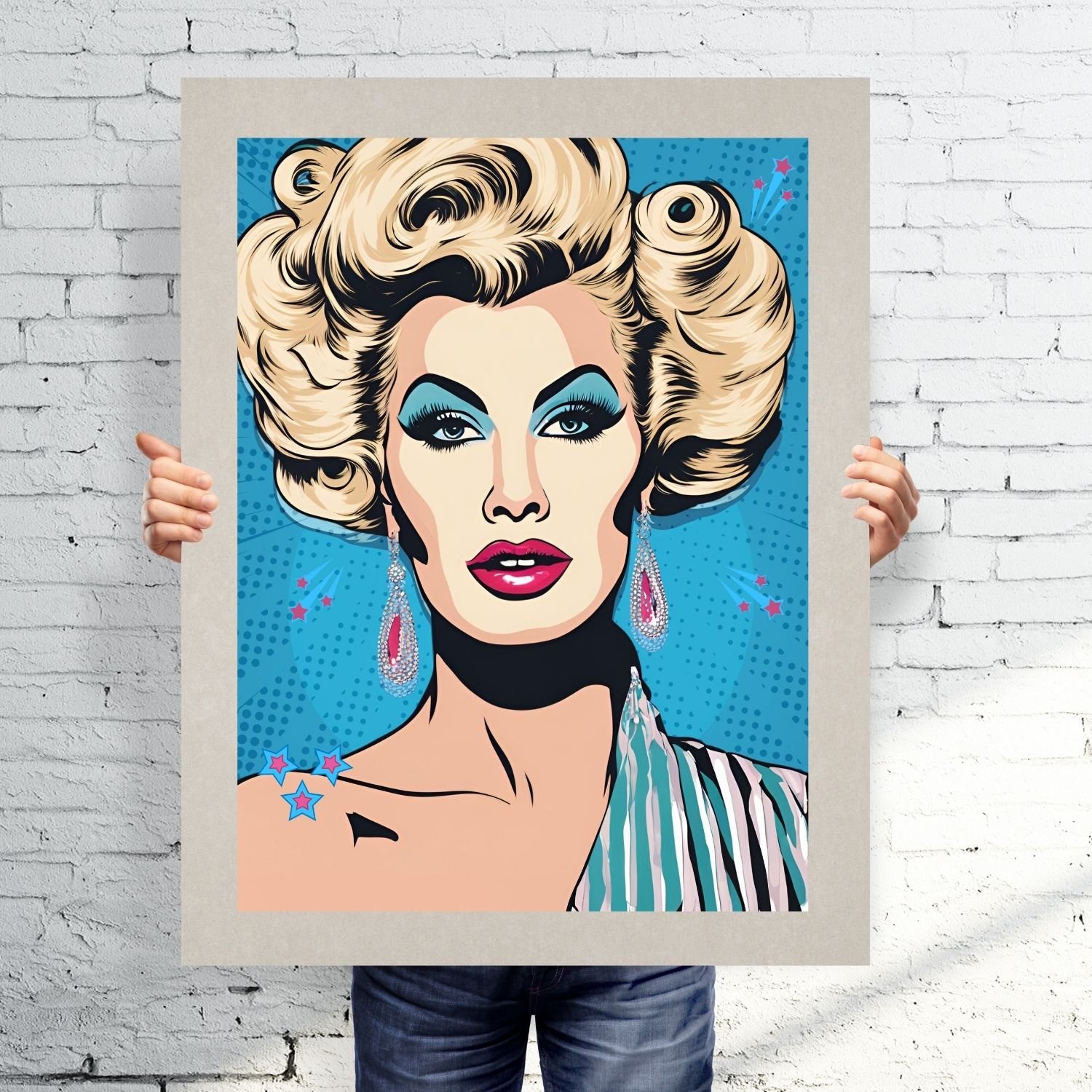 A digital file for printing; LGBT pop art wall decoration. Beauty drag queen pop art style decoration poster. Wall art printable LGBT creative art