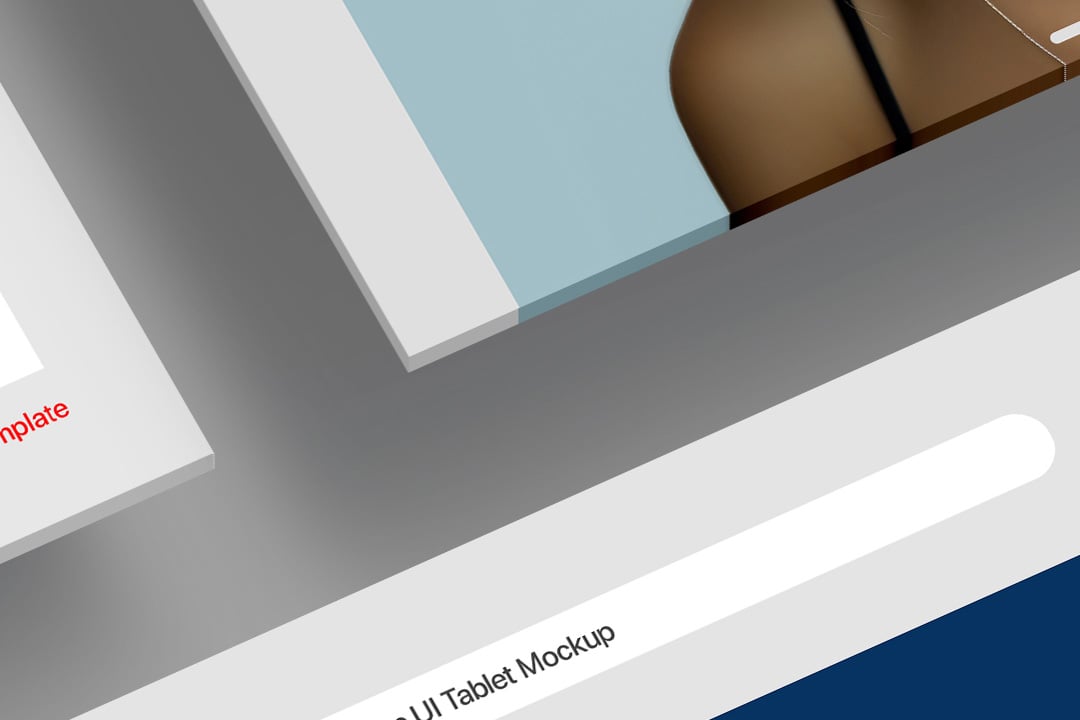 High-resolution App-UI/UX mockup pack with seven isometric tablet screens, editable lights & shadows and Smart-Object layers.