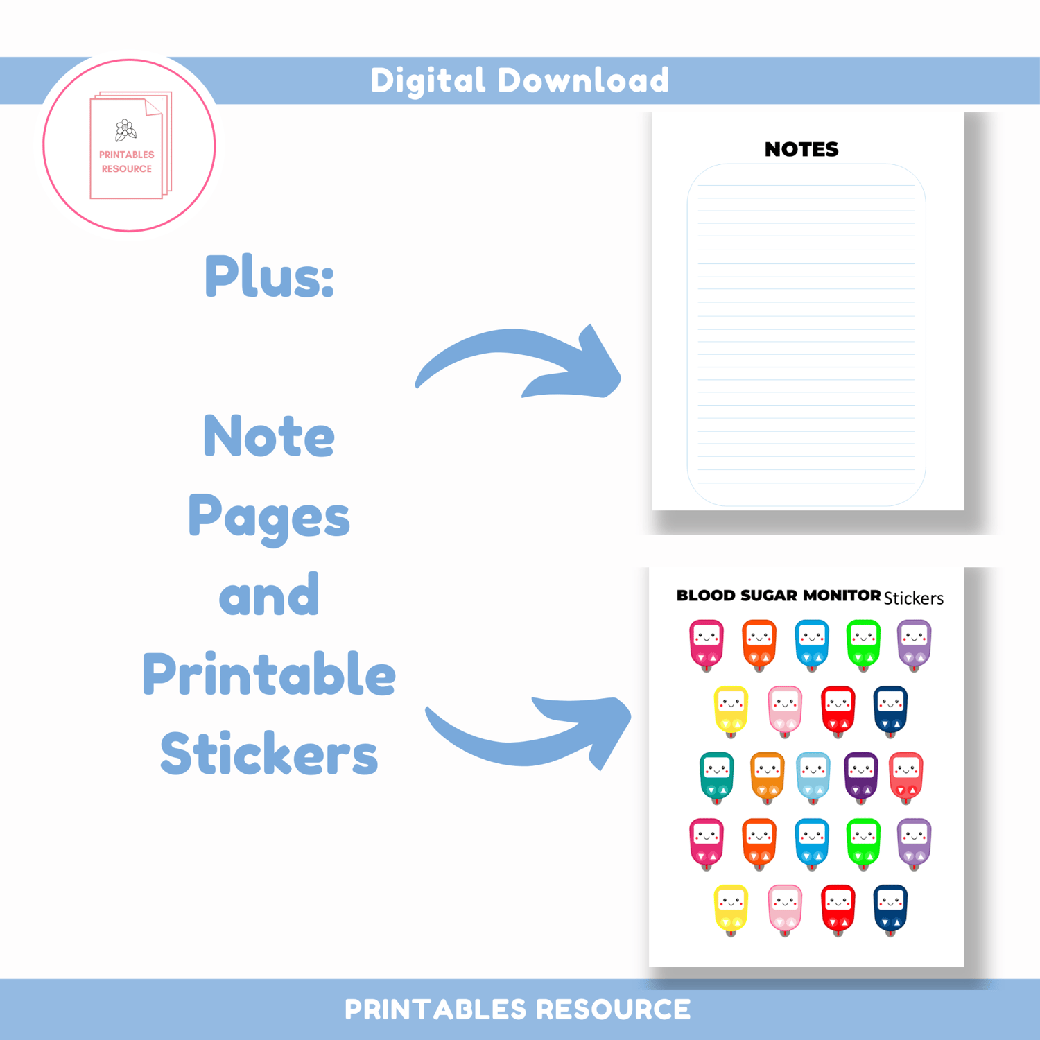 Tracking blood sugar levels is especially important if you or a family member have diabetes. This Diabetic Daily Planner, in US Letter size, will help keep information organized with one spot to record your levels each day plus a whole lot more! An easy way to not only monitor and track your vitals, as well as plan for your daily, month and year schedule, track doctor appointments and know exactly what you are going to eat for each meal! 🙌 Plus there are two pages for notes and a sheet for DIY printable stickers. It is simple and easy to use!