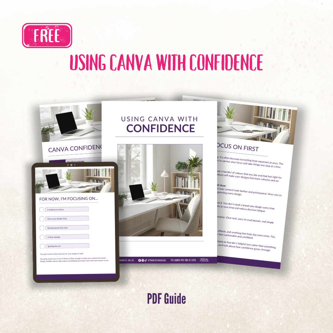 This free guide is designed to help small business owners feel calmer and more confident when using Canva, without needing to be techy or creative.