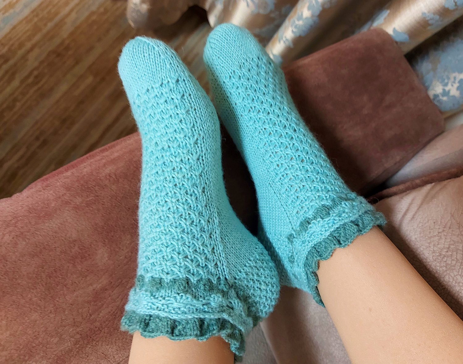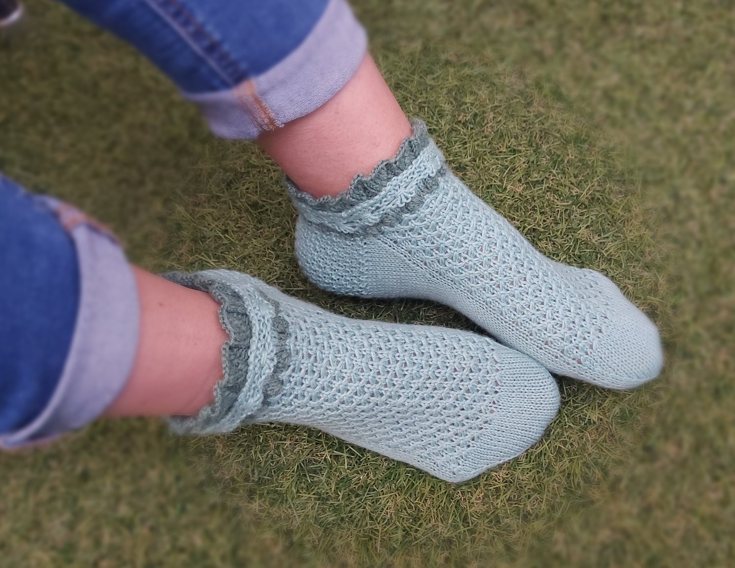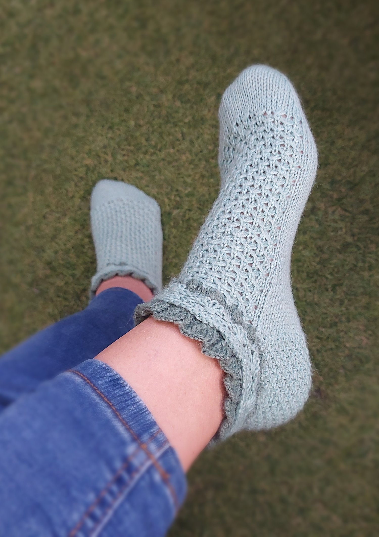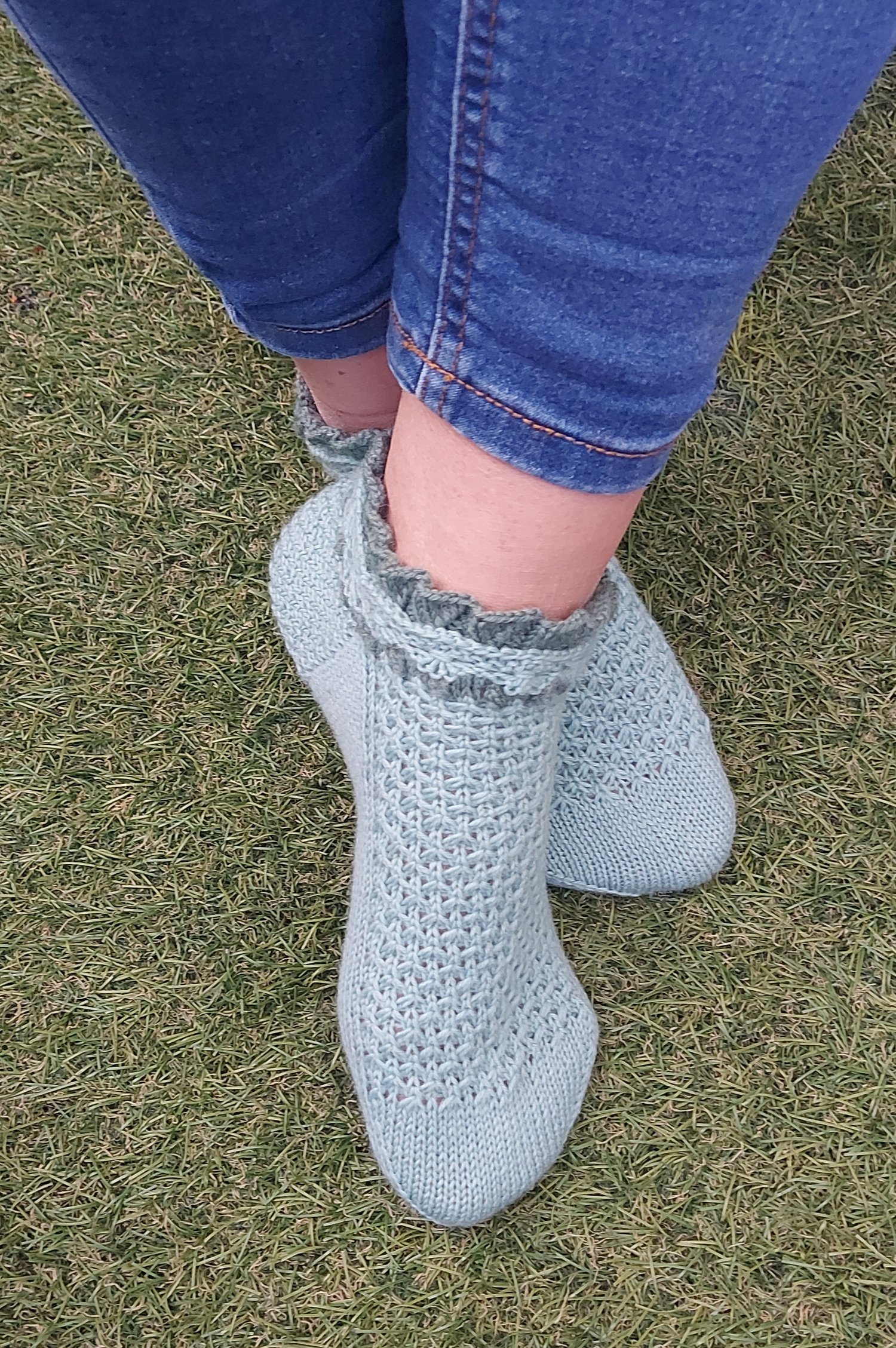 Skills required: basic knitting, decrease, increase, basic sock skills, short rows, heel flap, gusset, turning the heel, short row toe, Kitchener stitch.