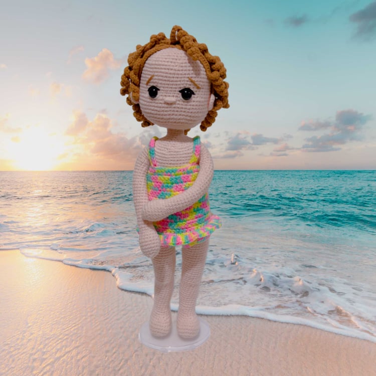 Yarn: she is made with “FINGERING” weight yarn suitable for amigurumi and a 2mm crochet hook.