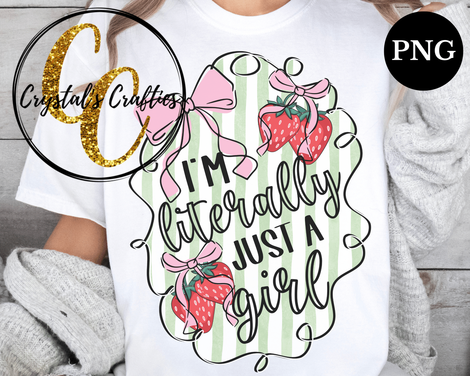Looking for the perfect touch of pink and playful charm for your next project? This “I’m Literally Just a Girl” PNG is giving full-on girly coquette vibes! With sweet strawberry details and a dreamy aesthetic, this high-quality transparent PNG is perfect for sublimation, stickers, t-shirts, tumblers, digital scrapbooking, and more.