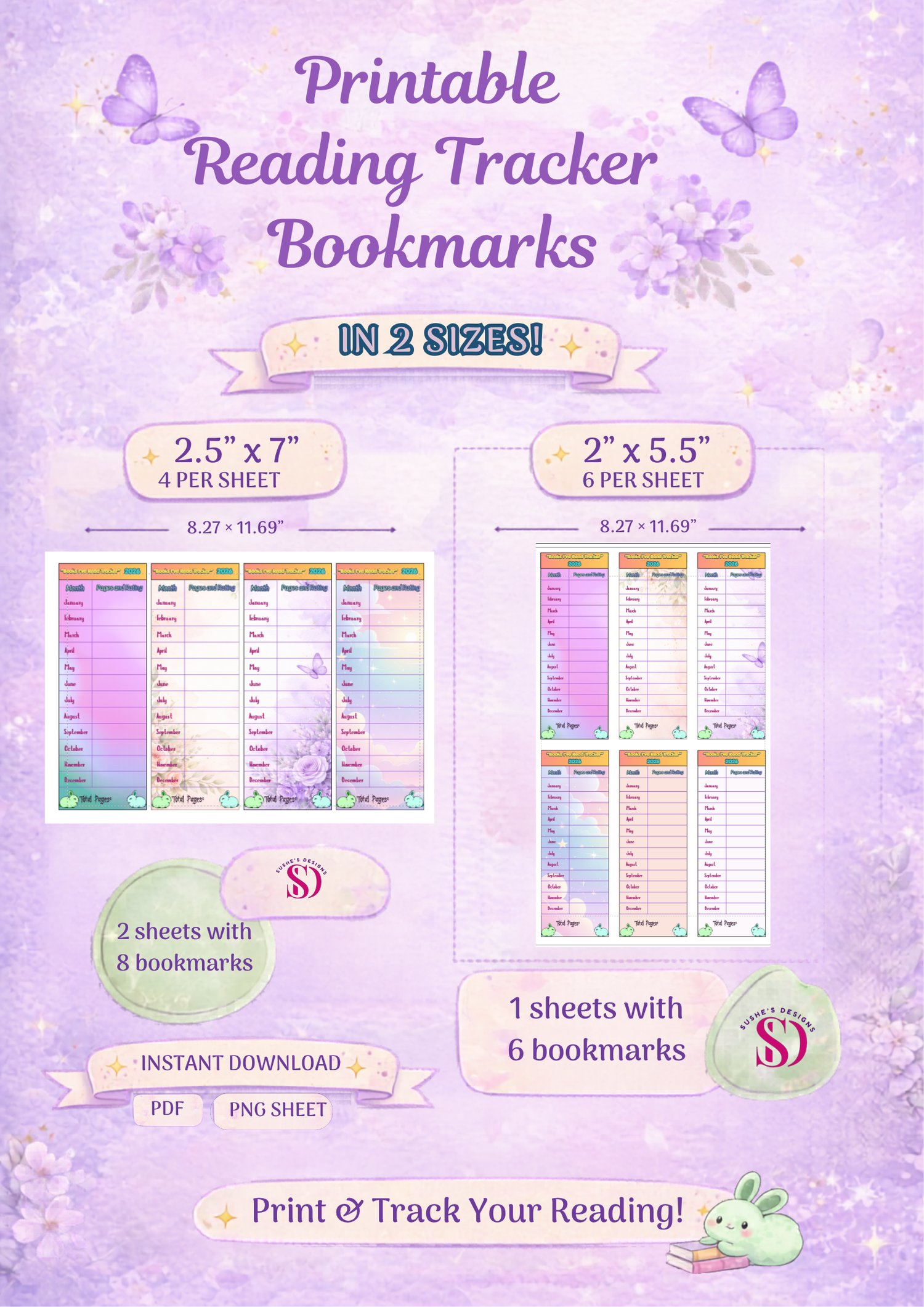 Printable Reading Tracker Bookmarks | 2 Sizes | Aesthetic Bookmark Set | Instant Download