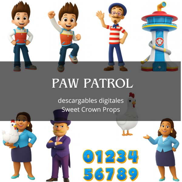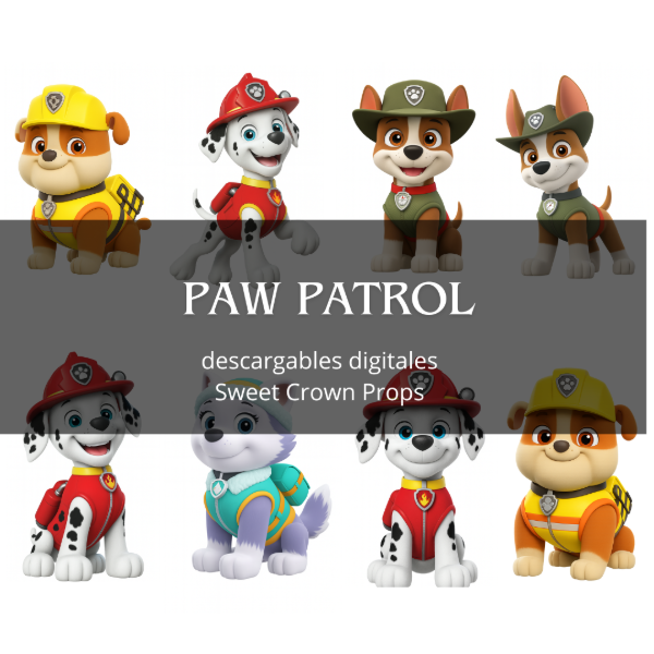 Este set de imágenes digitales de Paw Patrol incluye 39 imagenes de toda la patrulla lista para acompañarte en tus proyectos creativos: Chase, Marshall, Skye, Rubble, Rocky, Zuma, Everest y Ryder, con sus vehículos y accesorios característicos.