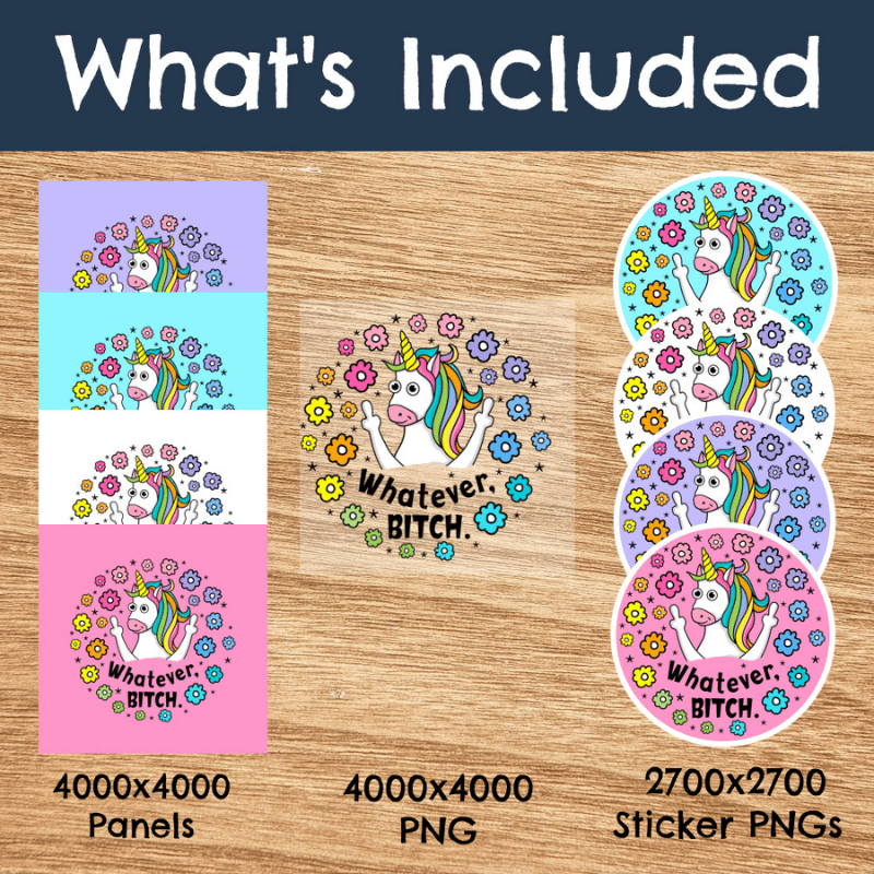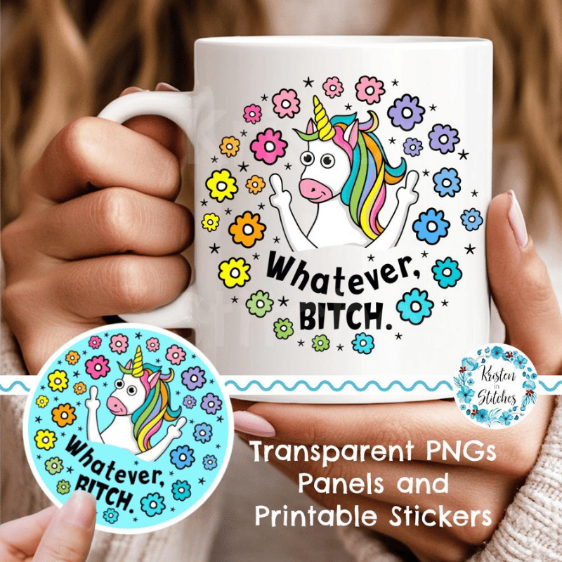 Whatever Bitch Swear Word Graphics, Transparent PNG, Panels and Stickers, Sarcastic Unicorns
