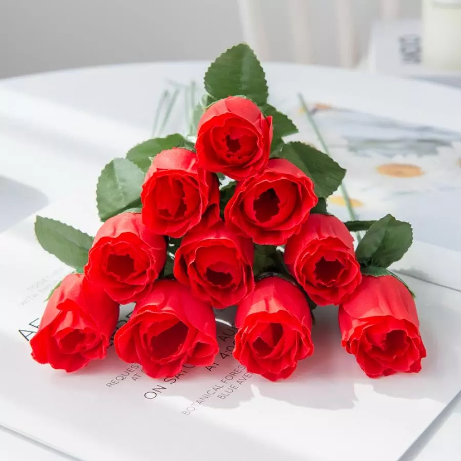 10 pièces roses rouges en soie bouquets vase pour décoration de maison jardin couronnes décoratives de mariage fausse plante vente en gros fleurs artificielles pas cher.