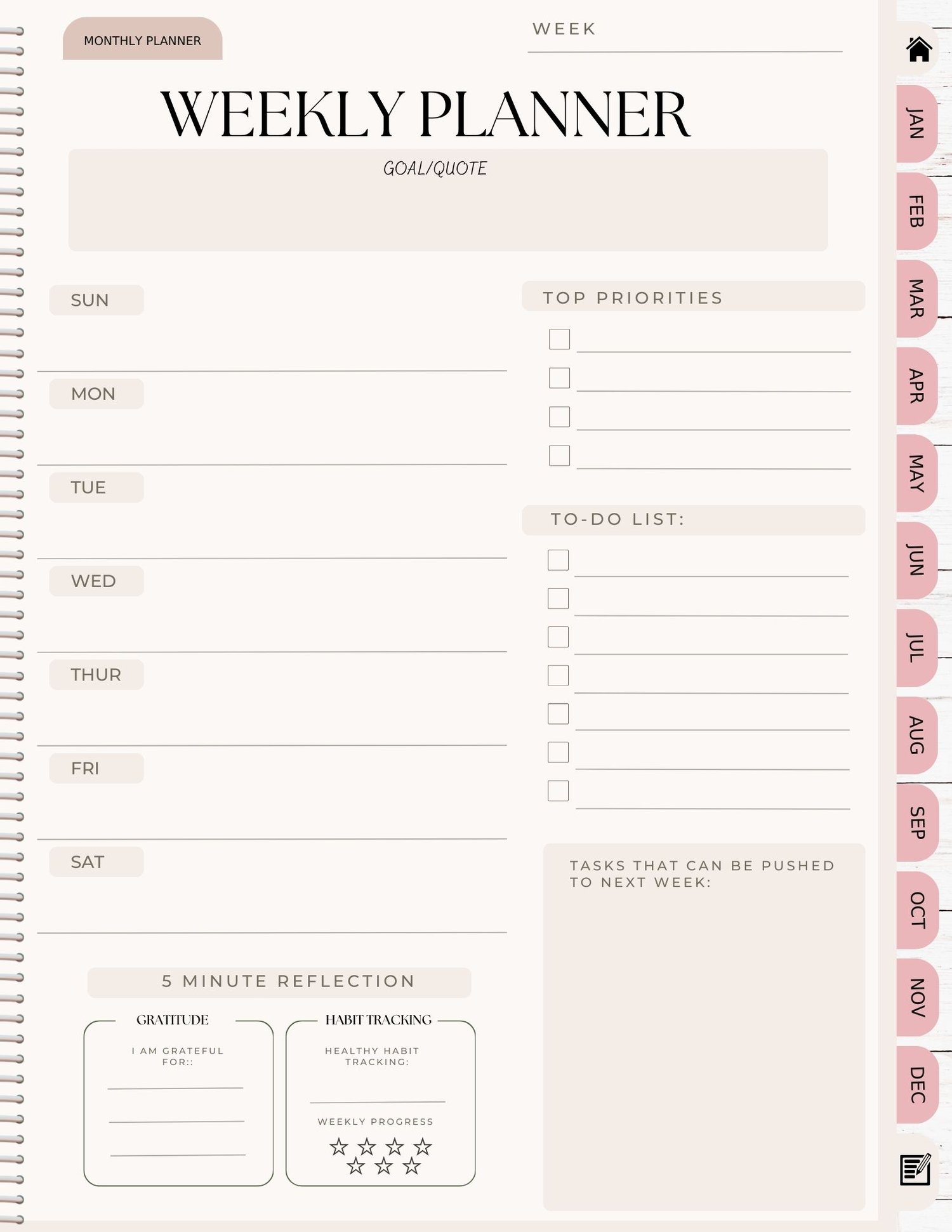 - Daily + Weekly + Monthly Pages – Track your to-dos, reflections, and wins