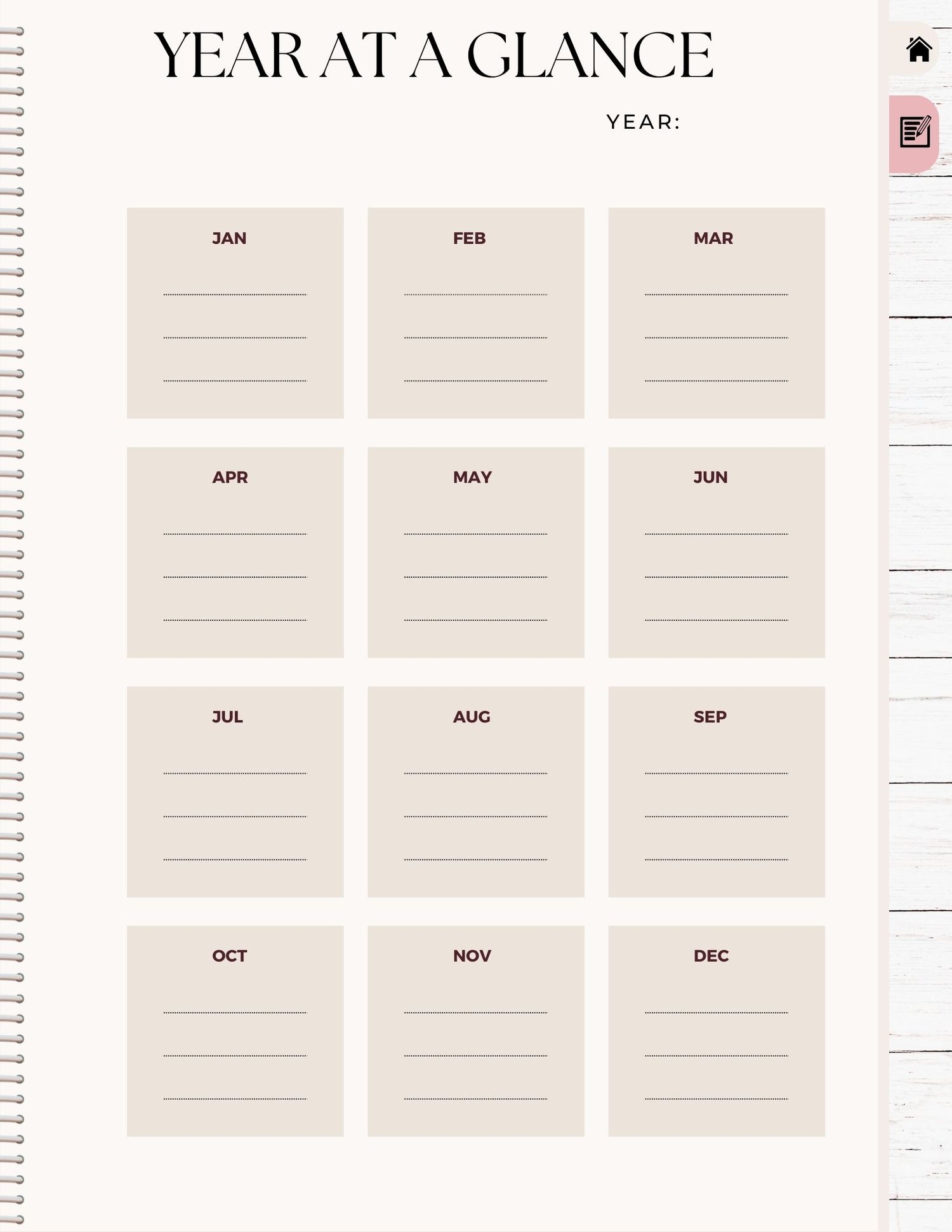 - Hyperlinked Monthly Tabs – Instantly jump to any month with a tap