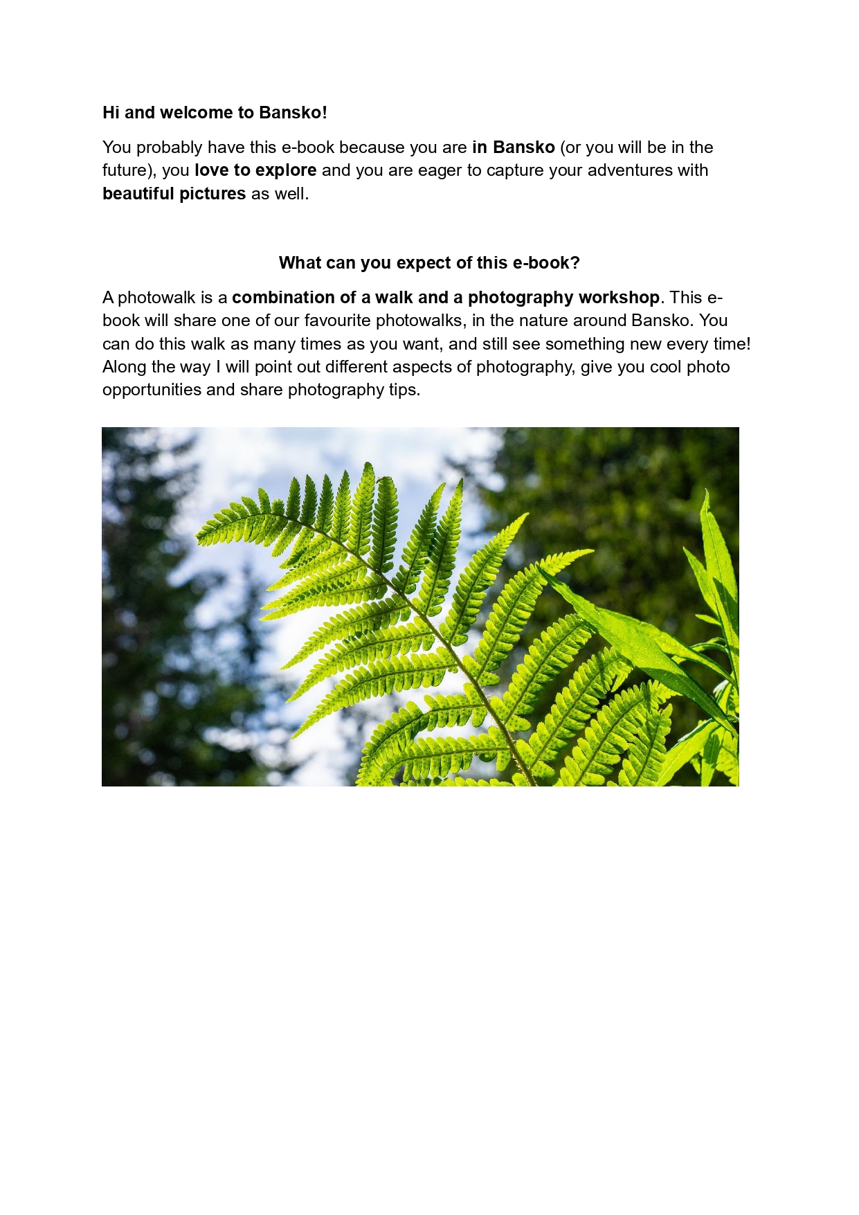 Then this e-book is for you! This e-book is a self-guided photowalk so you can explore the nature around Bansko and practise with photography any time.
