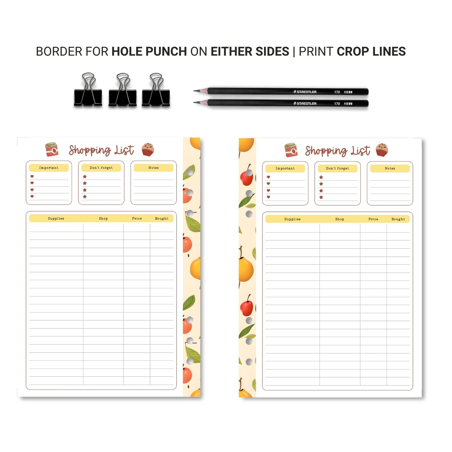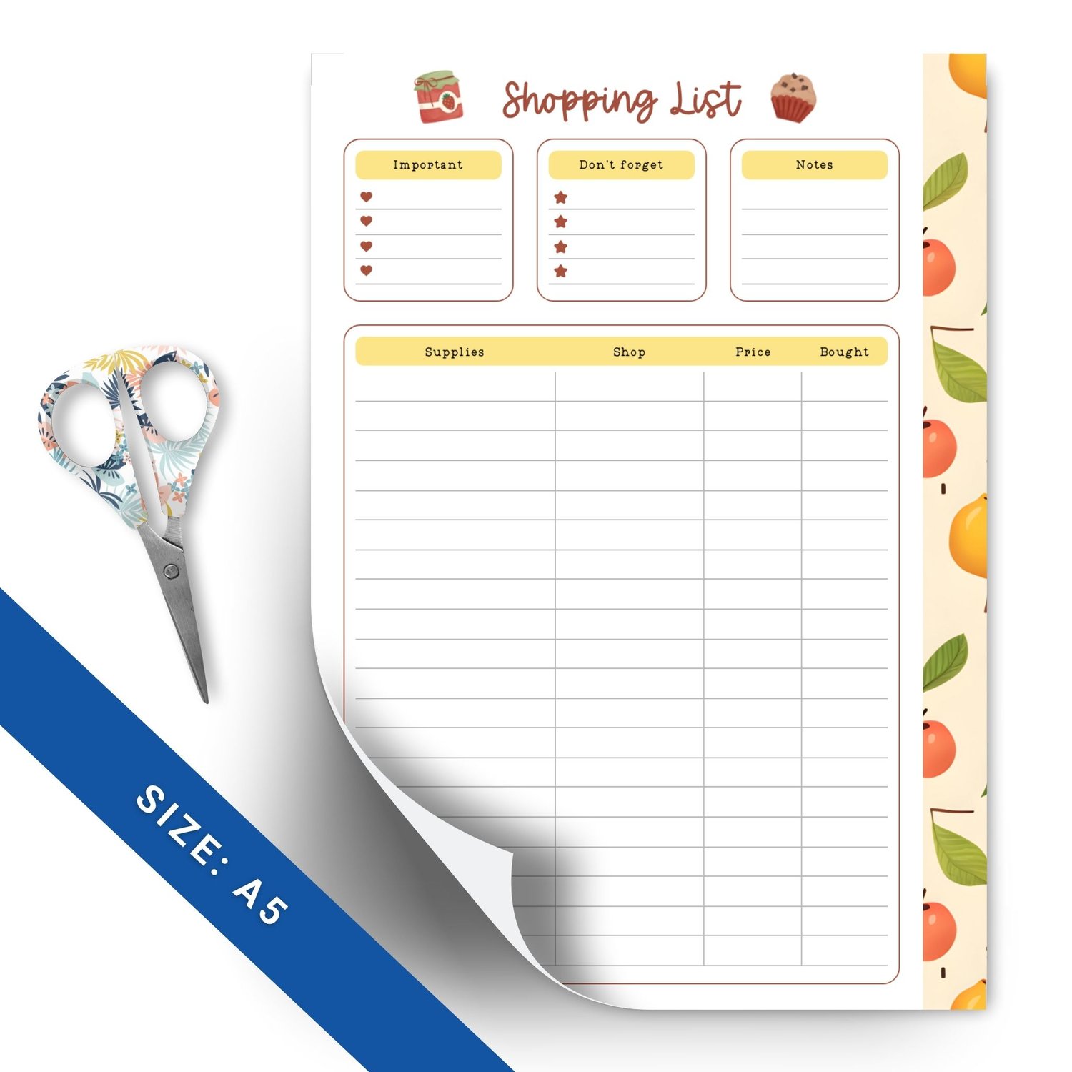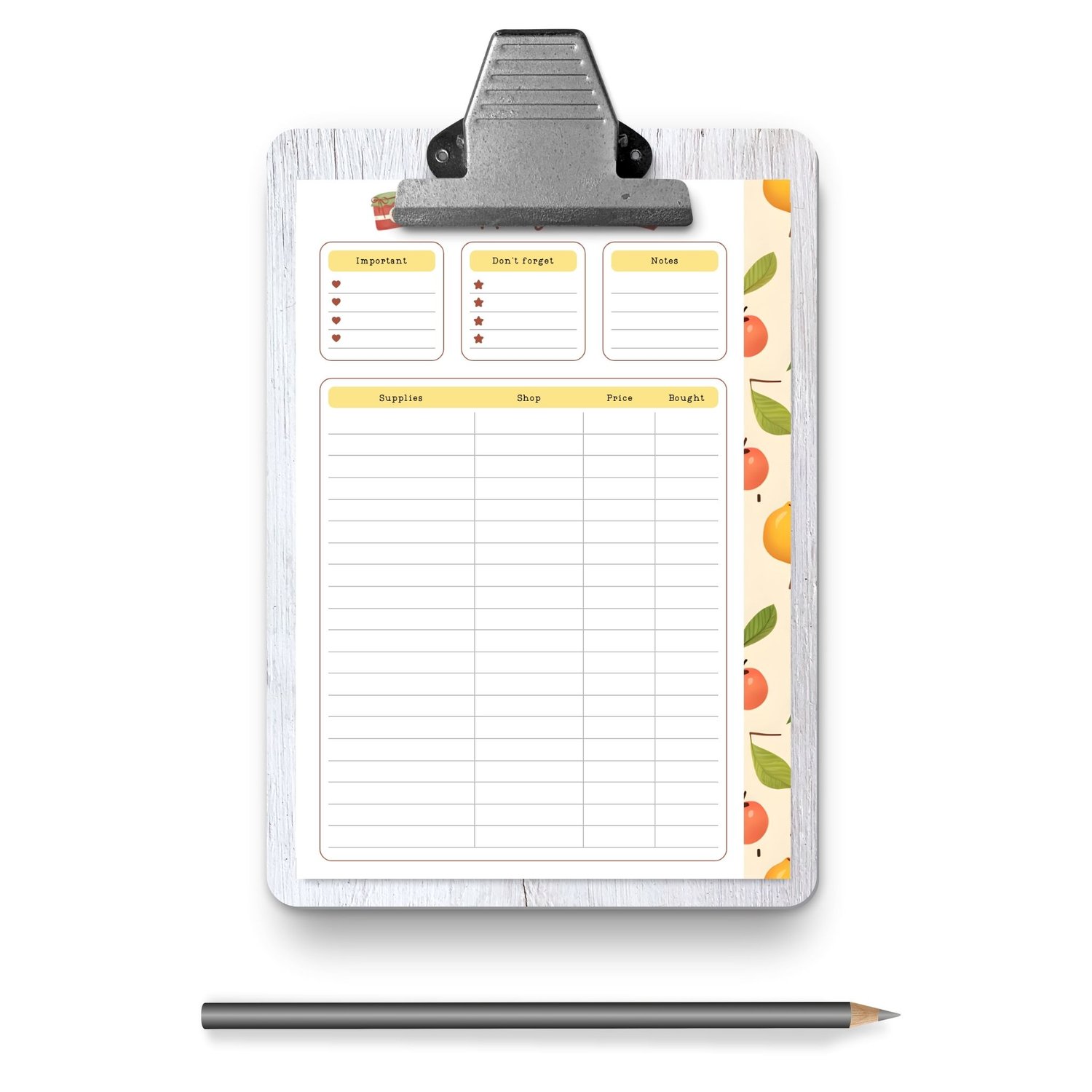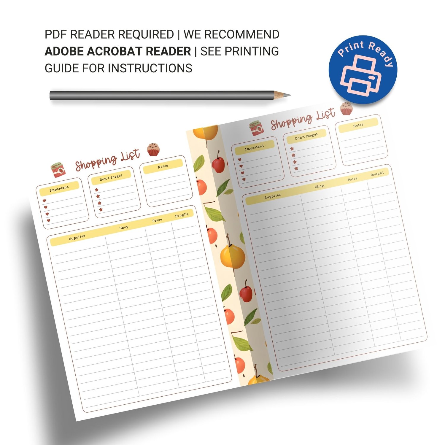 Shopping List - Fruits Themed - Printable Digital Download PDF