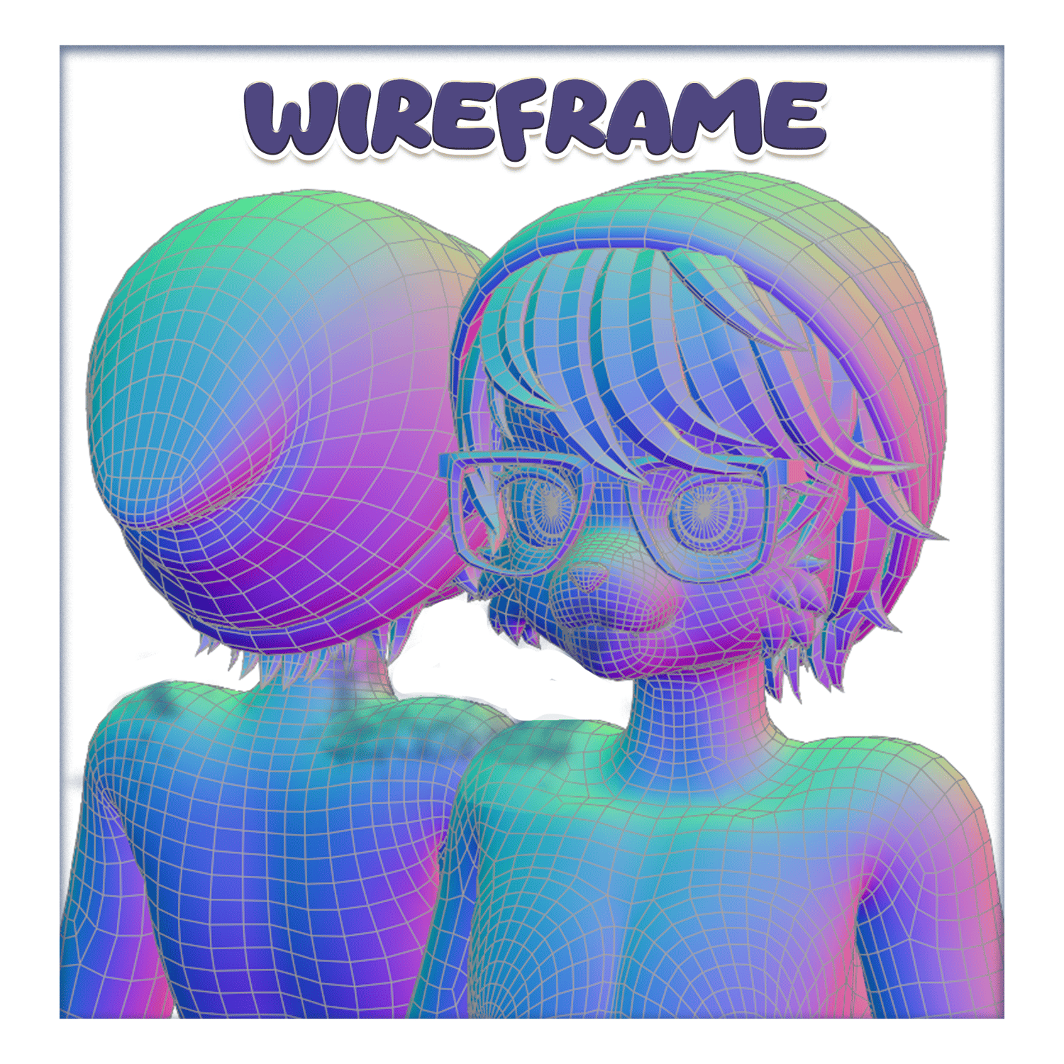 UVs compatible with box hair textures. Uses hair textures included with Biscotti.