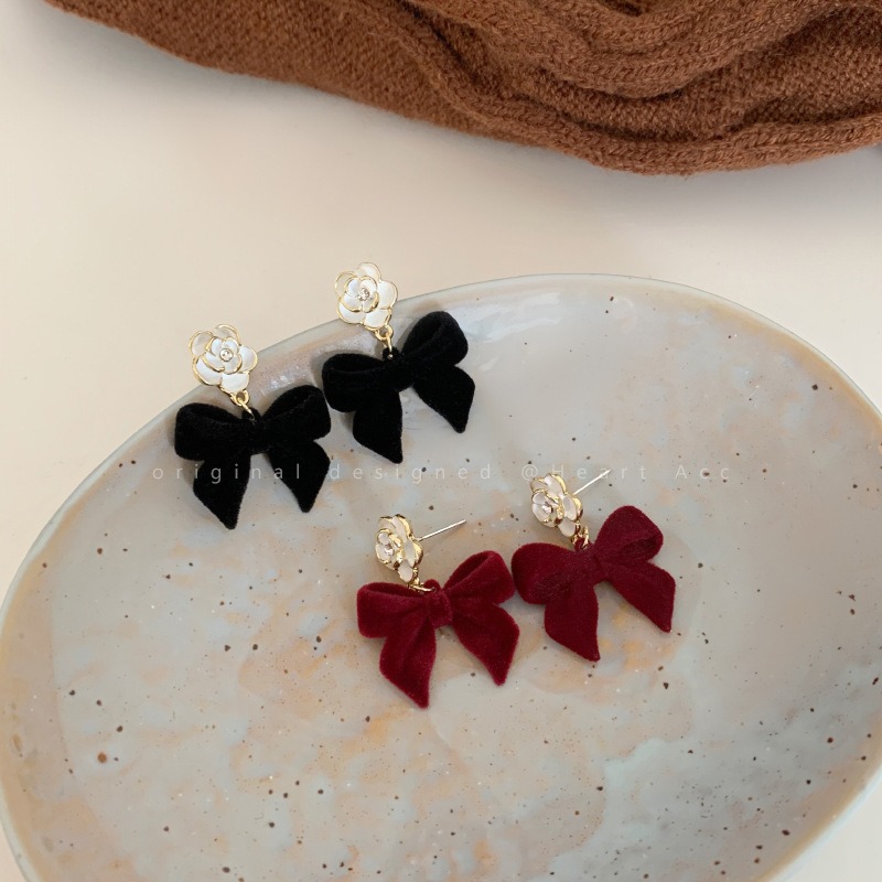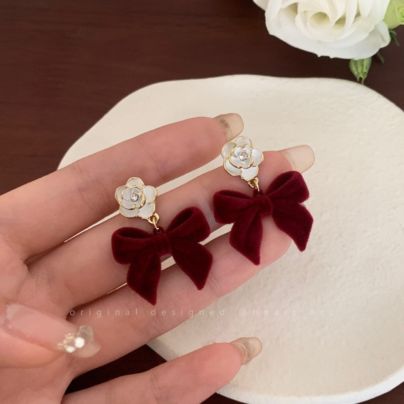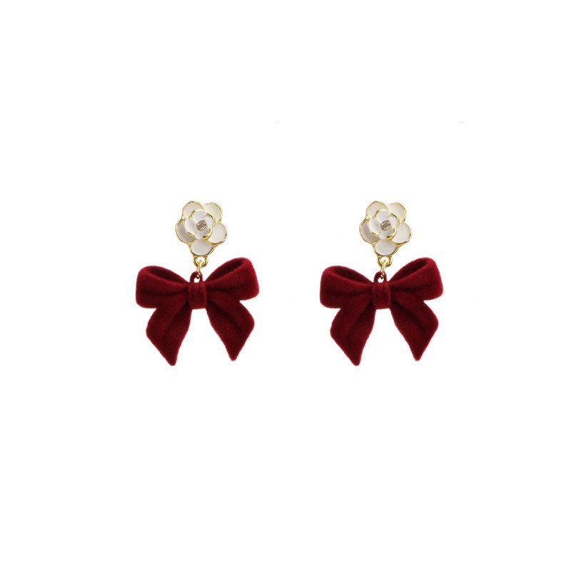 Floral Bowtie Camellia Earrings for Women in Autumn and Winter