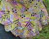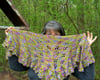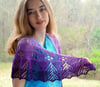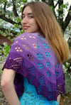 Crescent-shaped shawl worked from center back uses modified Faroese shaping to help it stay on the shoulders. Skills required: basic understanding of lace, double increases, and decreases. Written and charted instructions included. Suitable for the intermediate knitter.