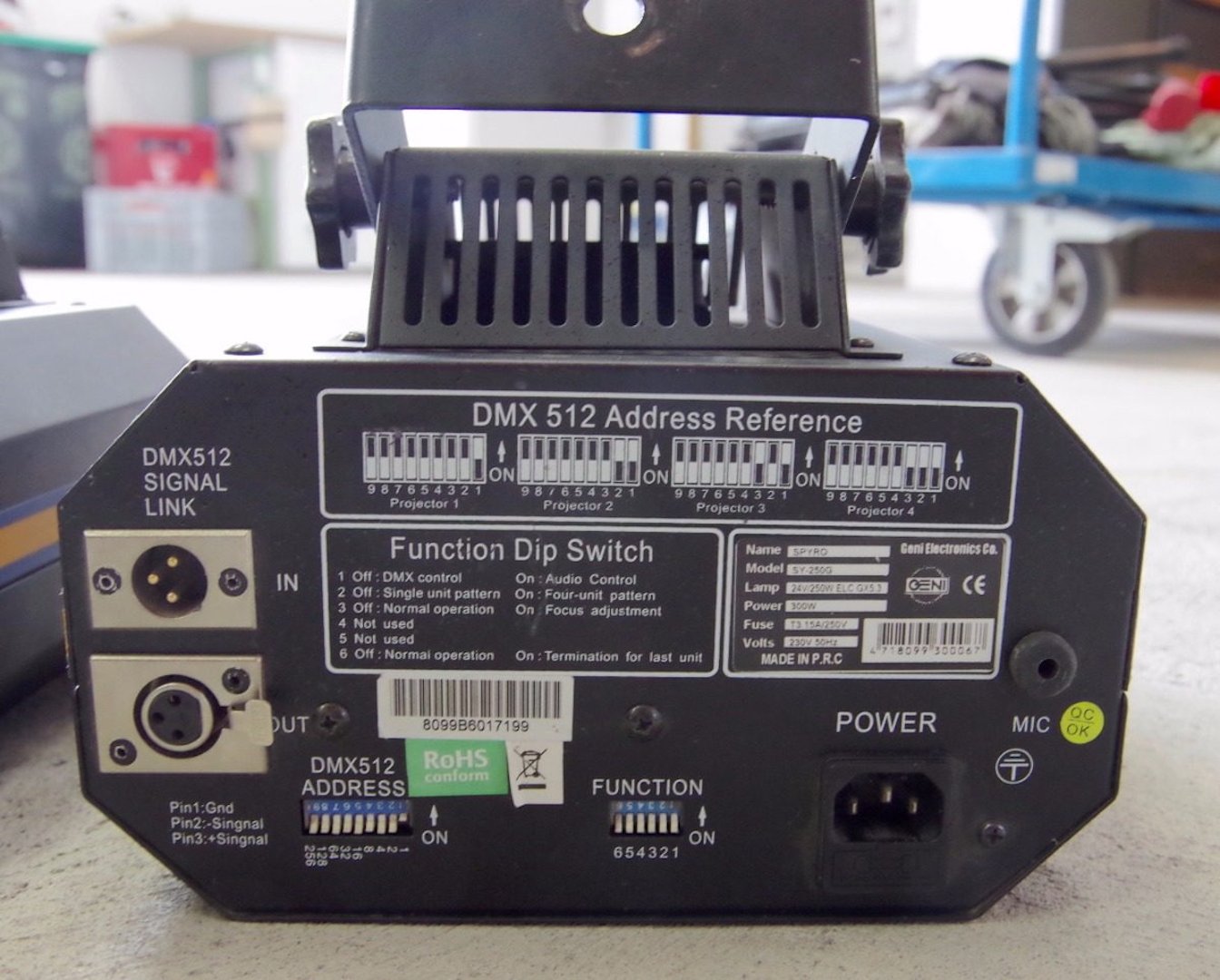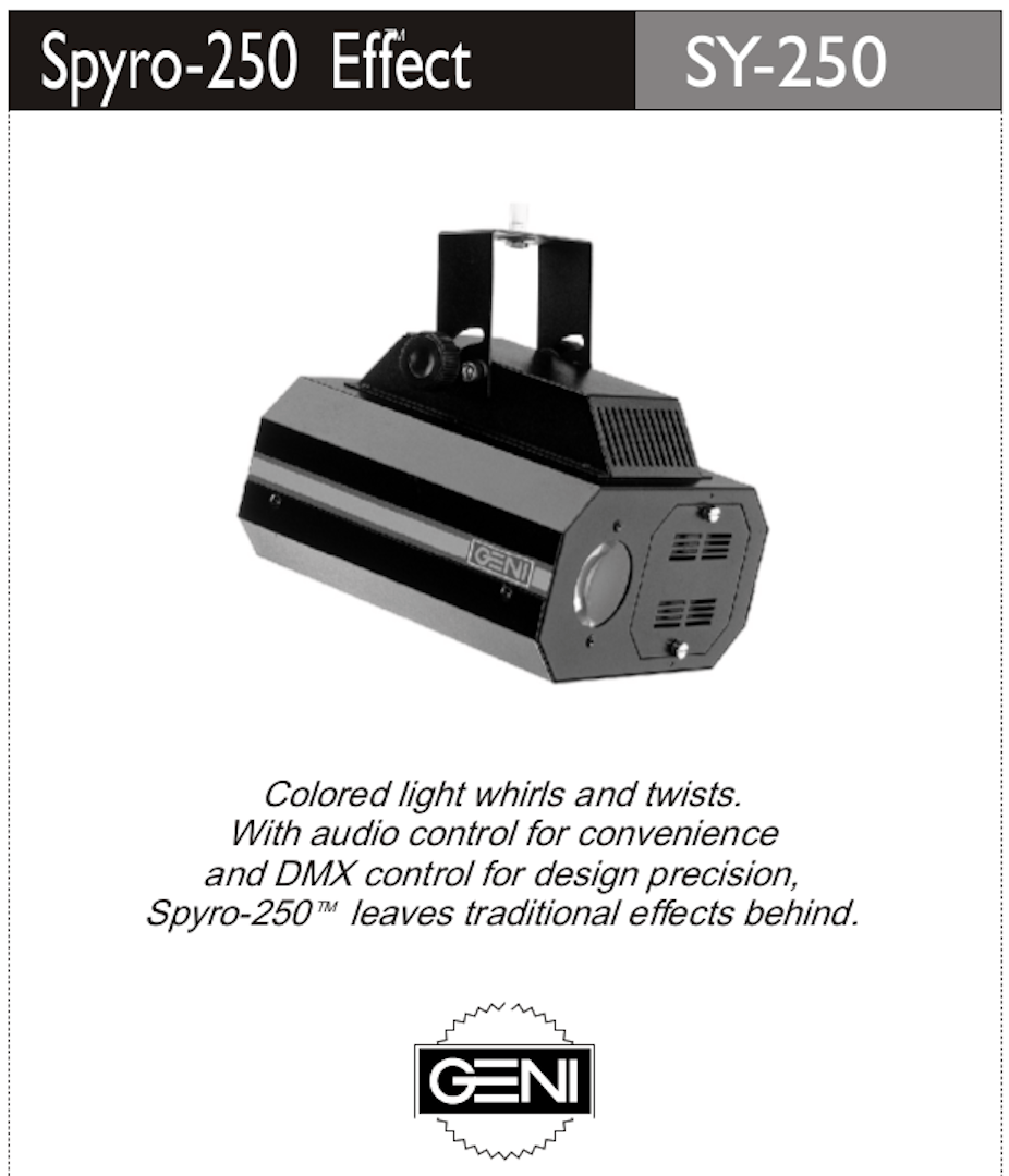 Librería para Freestyler DMX del efecto "Spyro 250" de Geni (Moonflower con lámpara ELC de 24v/250w).