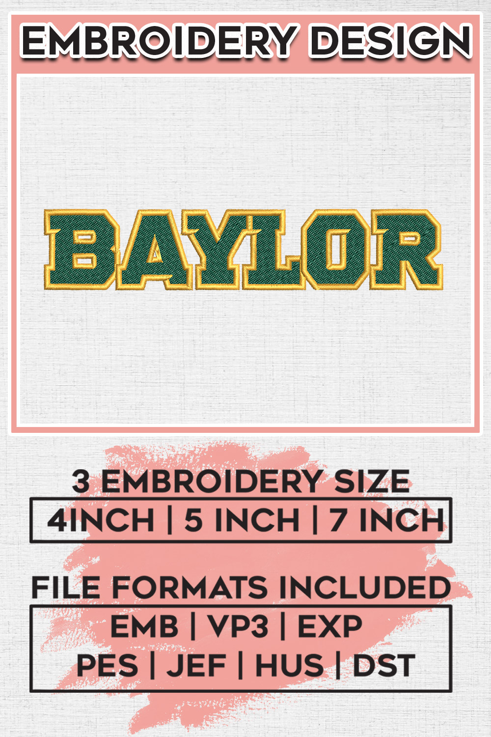 Baylor College Football Team Writing Logo Embroidery Designs, NCAA Baylor Bears Machine Embroidery Files, NCAA Logo embroidery designs, NCAA Baylor Logo, Digital Download