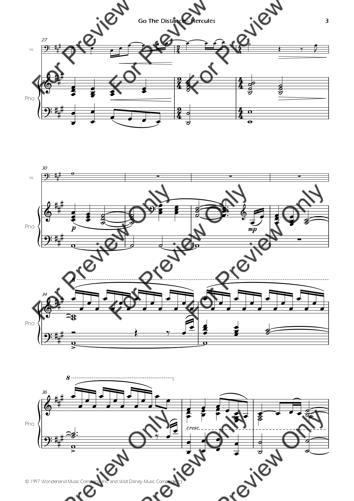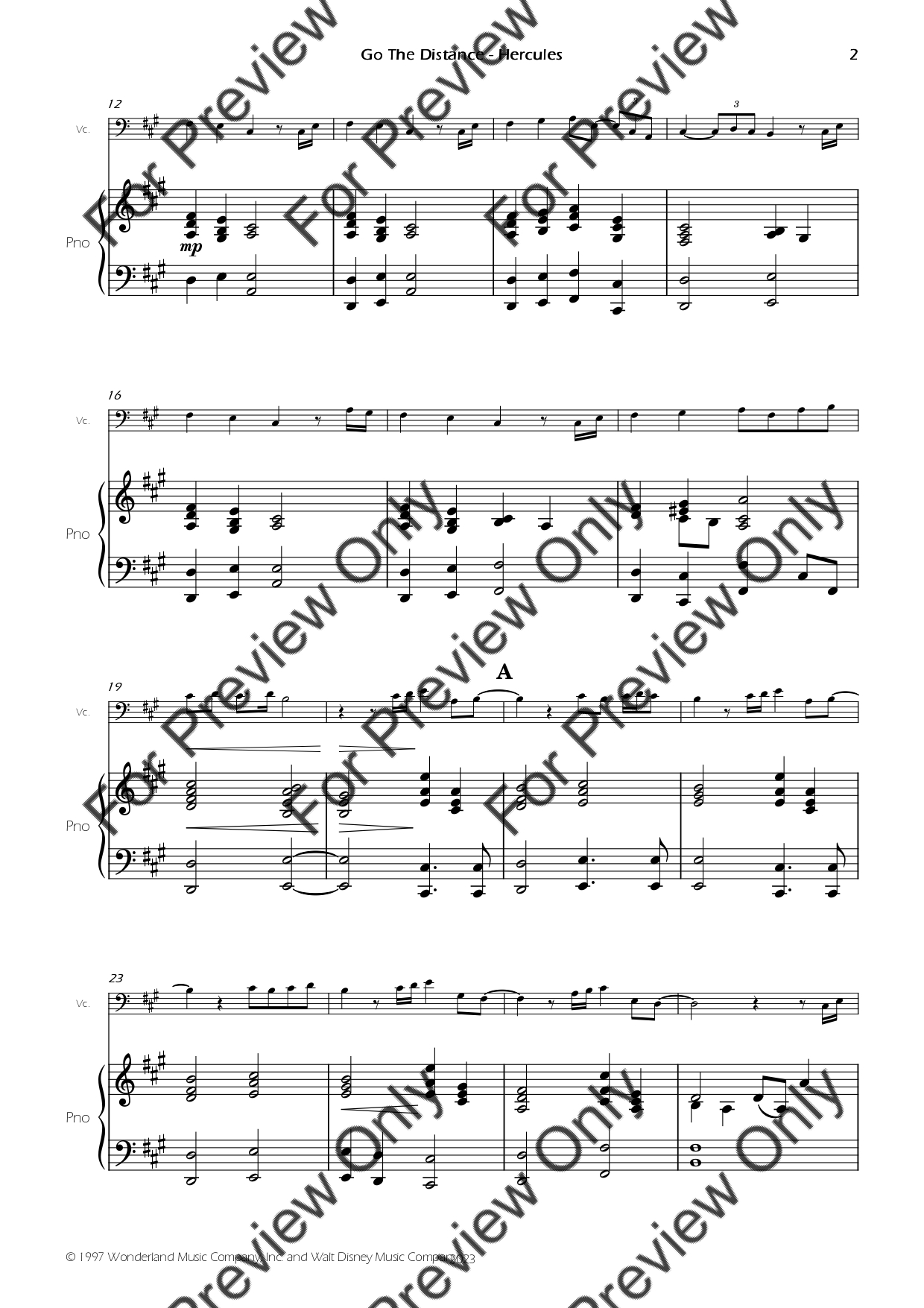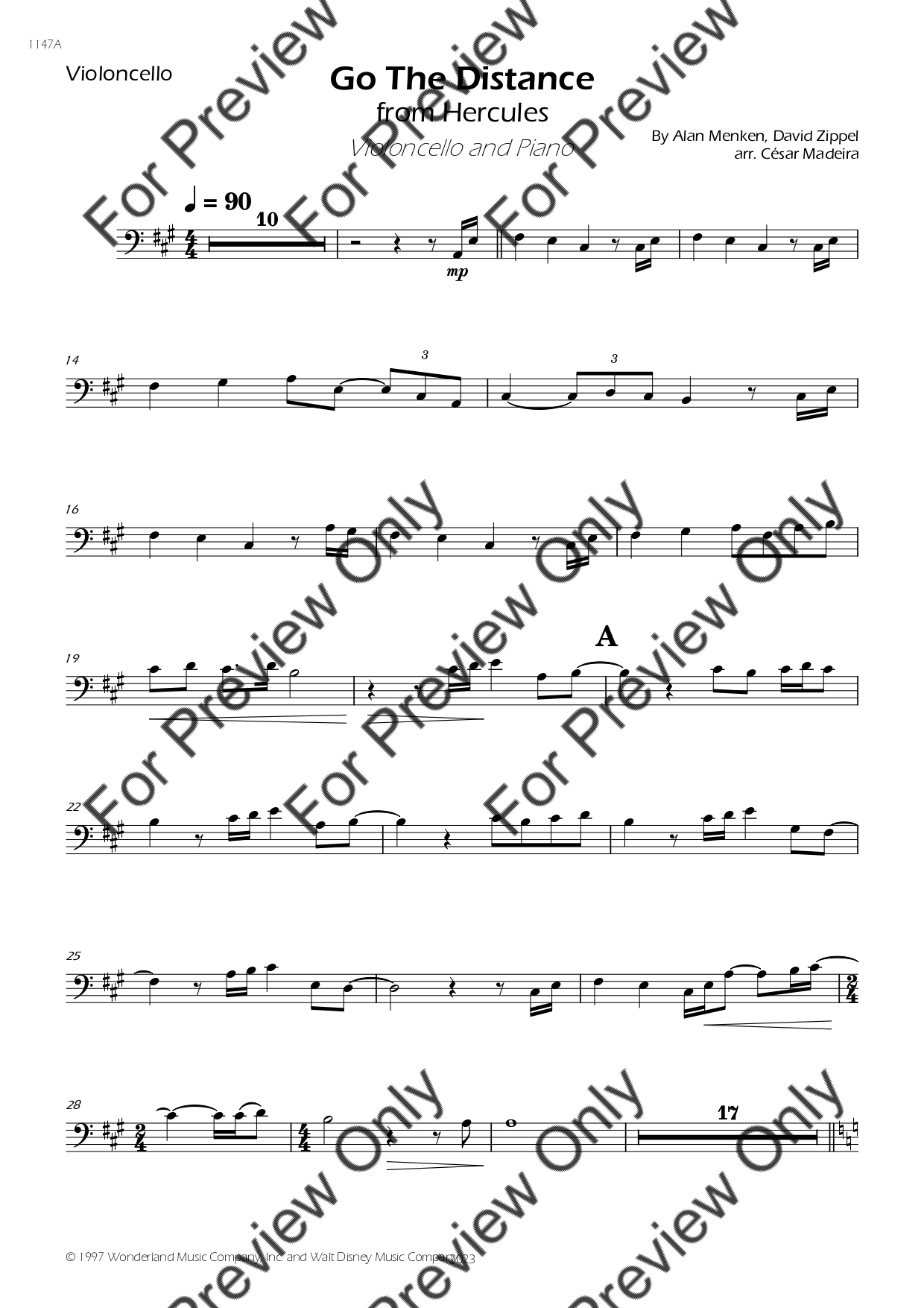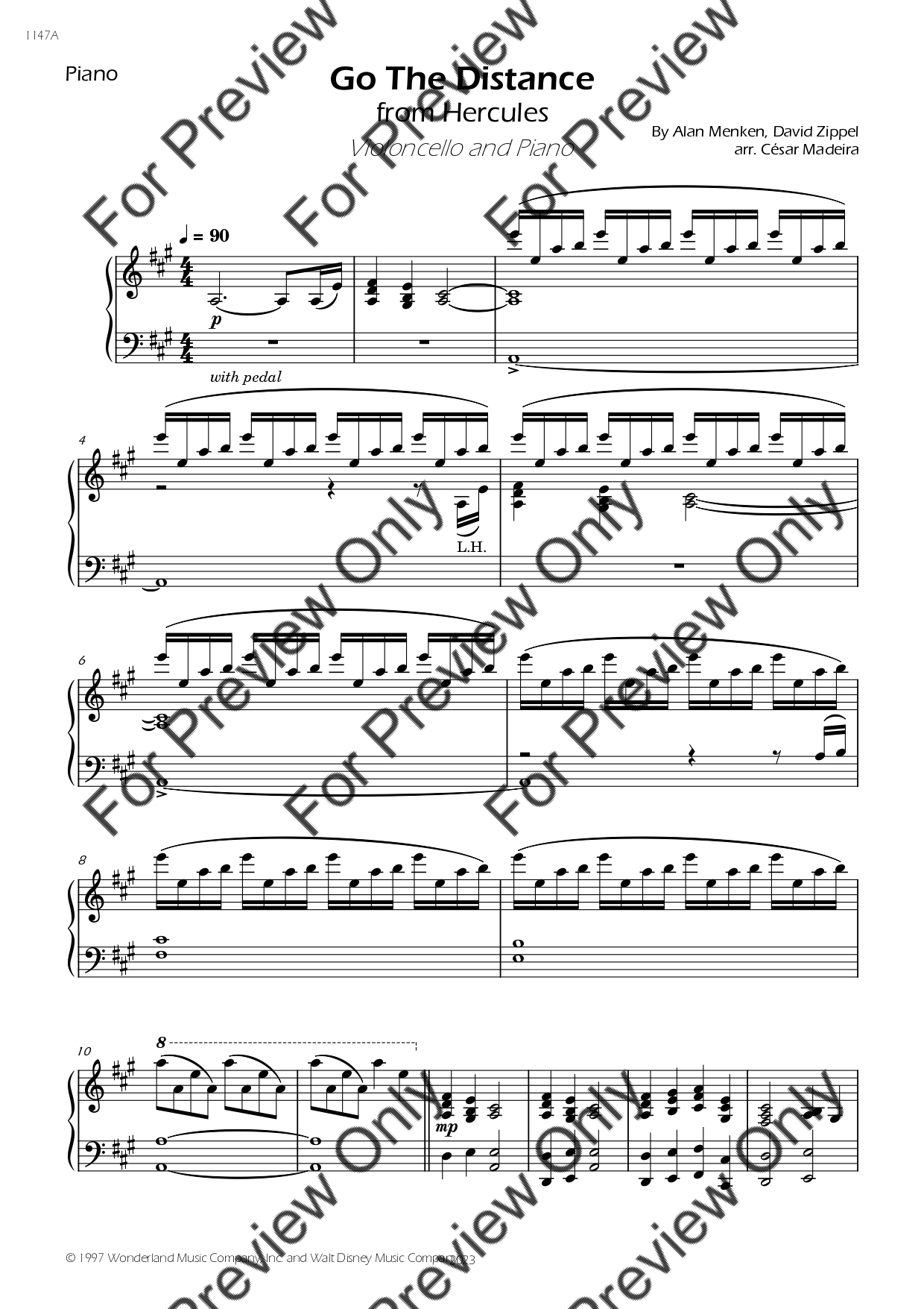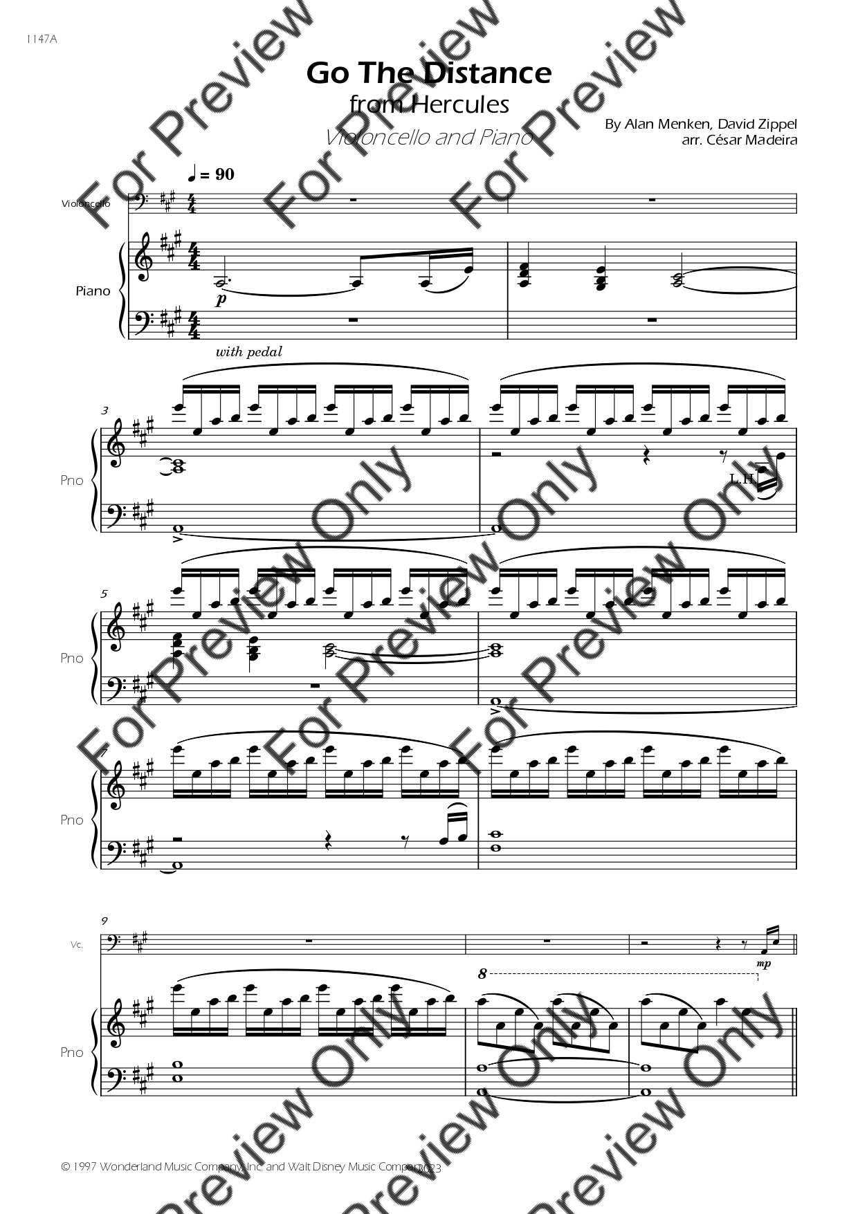 Go The Distance from Hercules by Alan Menken. Arrangement for Violoncello and Piano. With Full Score and Individual Parts. Have fun!