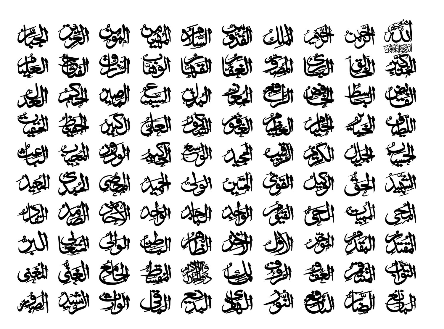99 Names of Allah – Rectangular CNC & Laser Cutting Design | Islamic Calligraphy Vector Files | Digital Download