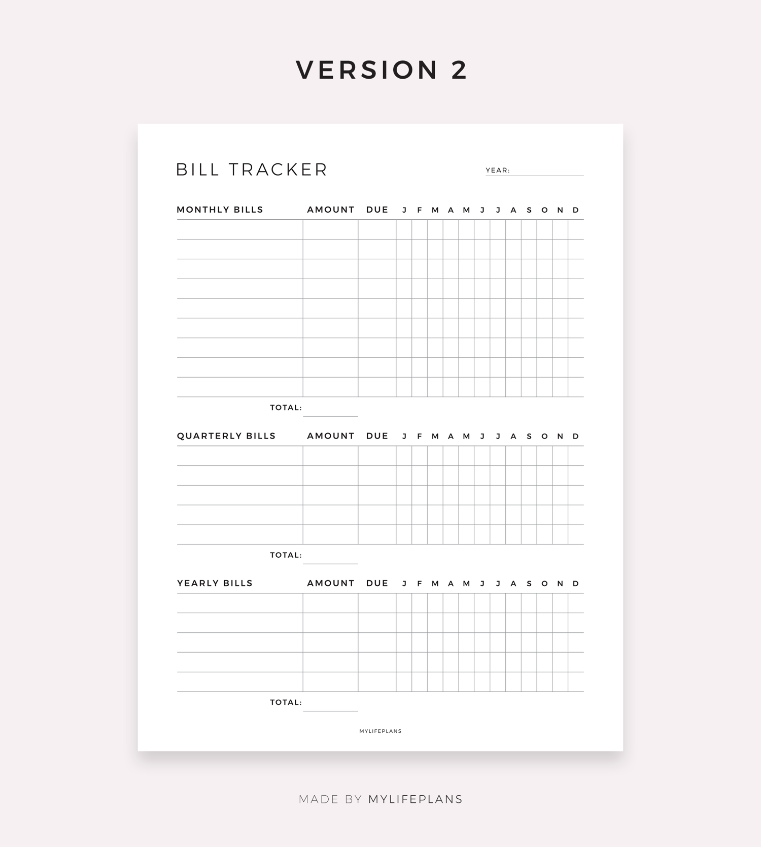 Monthly, Quartly, Yearly Bill Tracker, Digital Template for Goodnotes, Notability, Ipad
