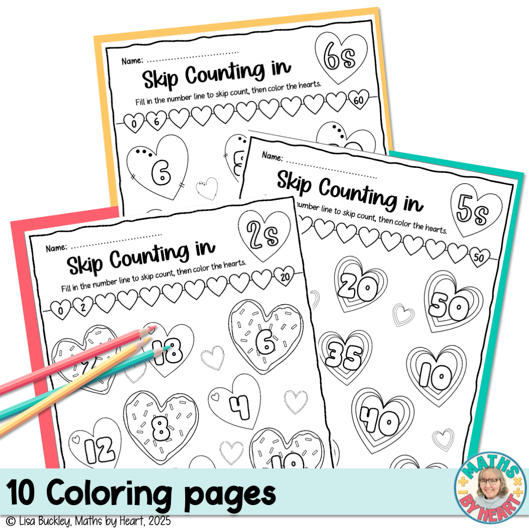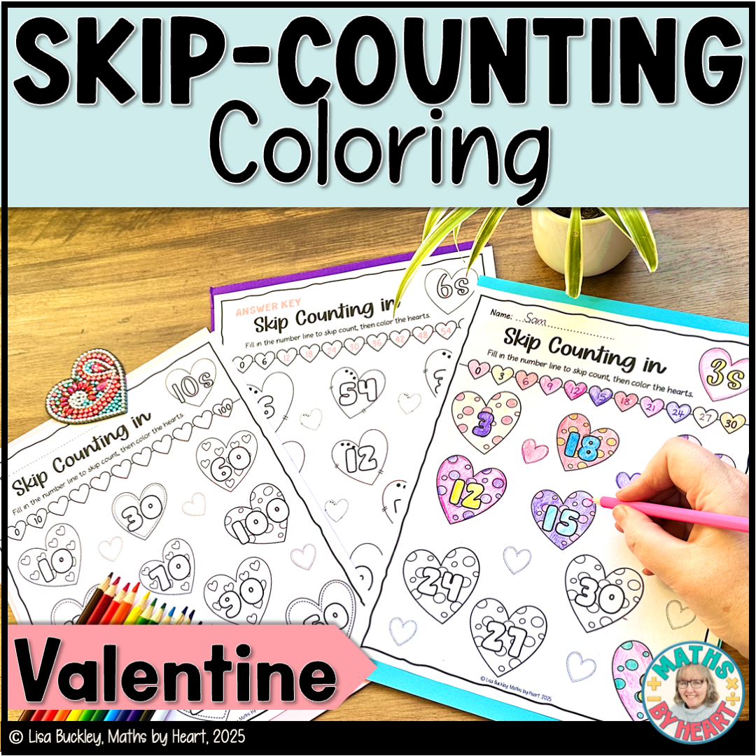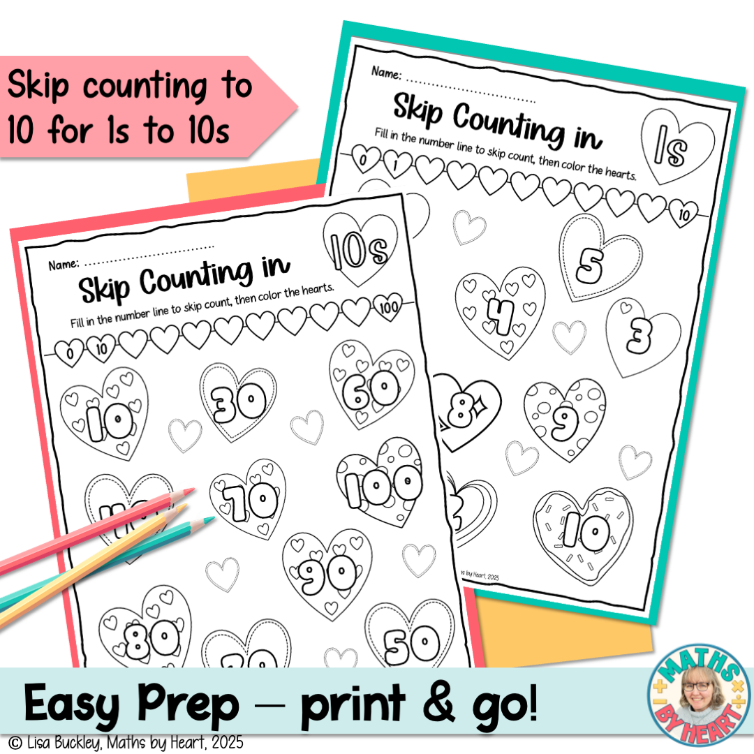 Are you looking for engaging alternatives to multiplication and skip counting worksheets? Take a look at these Valentine maths colouring worksheets. Each number from 1 to 10 has a skip counting worksheet to 10.