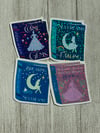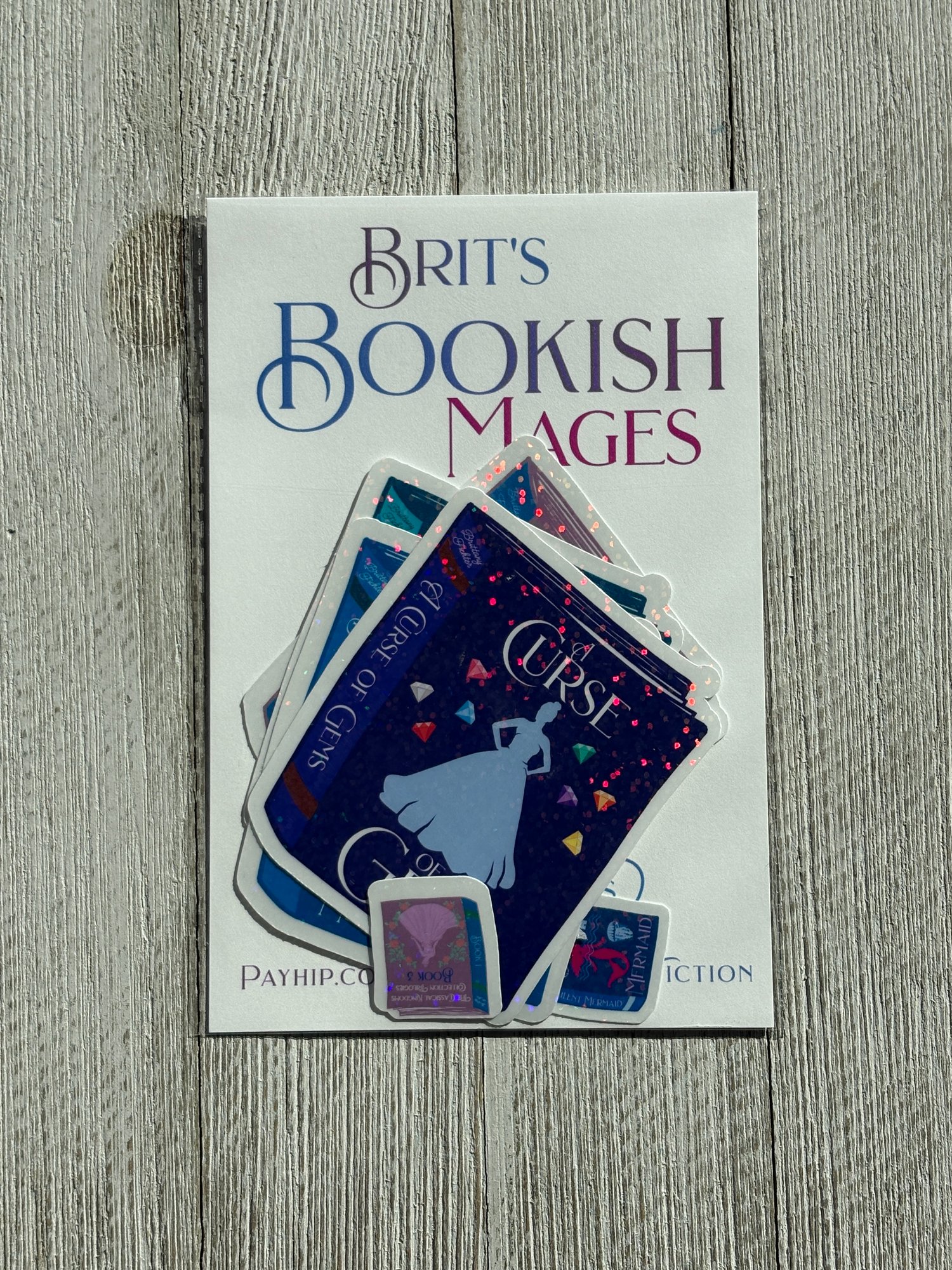 These four holographic waterproof stickers are based on the books A Curse of Gems, Neverland Falling, Breaking Neverland, and the Classical Kingdoms Collection Trilogies Book 3. Ideal for stainless steel tumblers, laptop covers, and lots of other daily objects, these stickers' shine will make you smile whenever the light hits them. Enjoy these four 3" stickers, or gift them to another book lover who will!