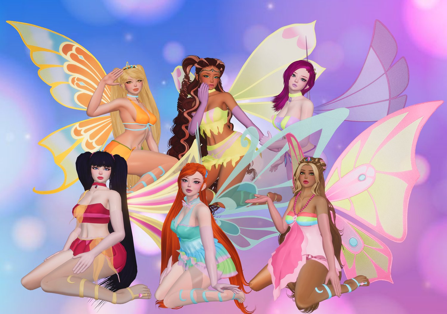Fairy Aura, Wings, Enchantix Outfits, Enchantix Tiaras & Acc, Casual Clothing, Enchantix Sandals all made from scratch by me.