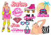 Barbie SVG, and PNG. barbie quotes, barbie girl clip art, pink, barbie roller, sunglasses, diamond, quotes like 'she's everything he's just ken', 'I'm a barbie girl', 'come on barbie let's go party'