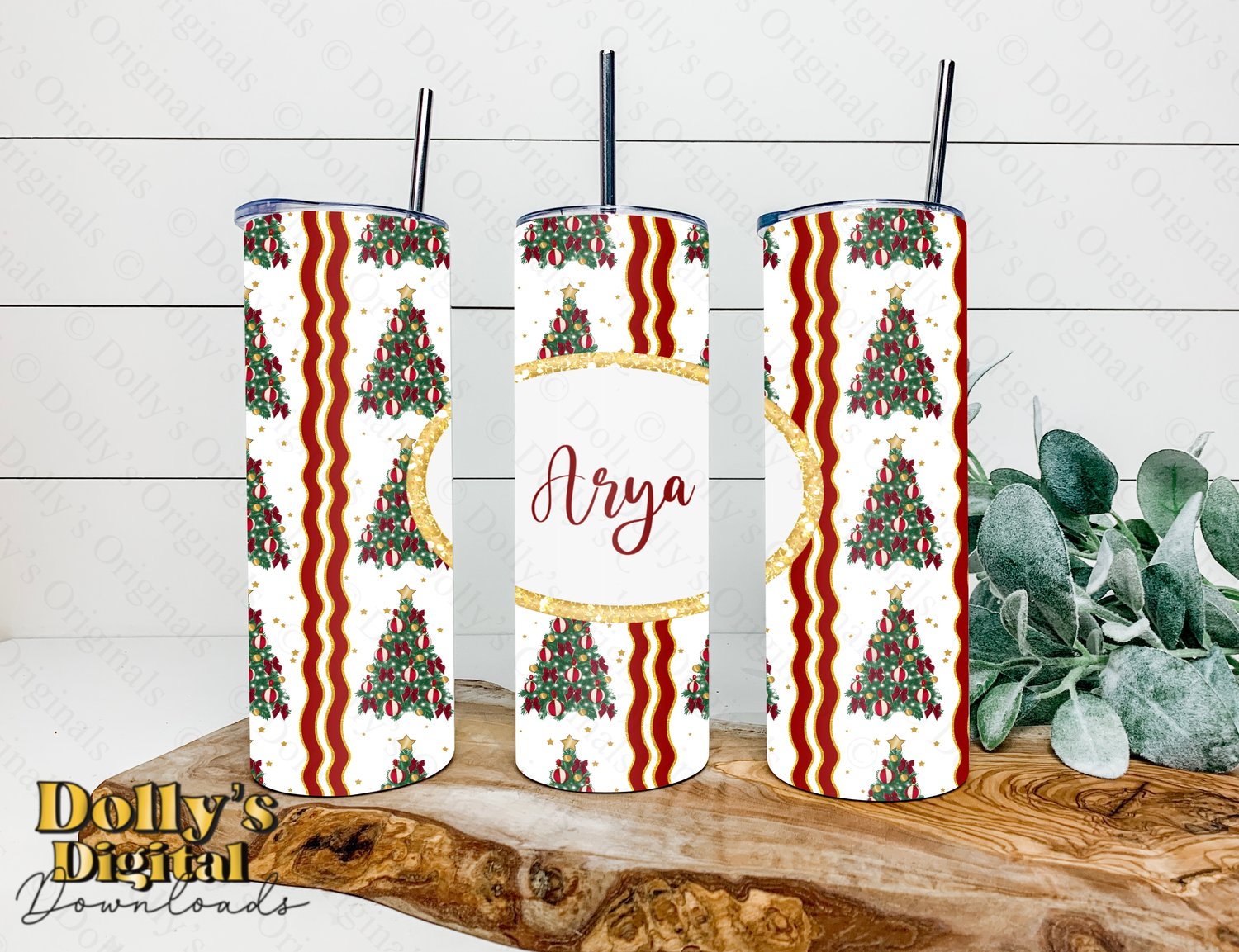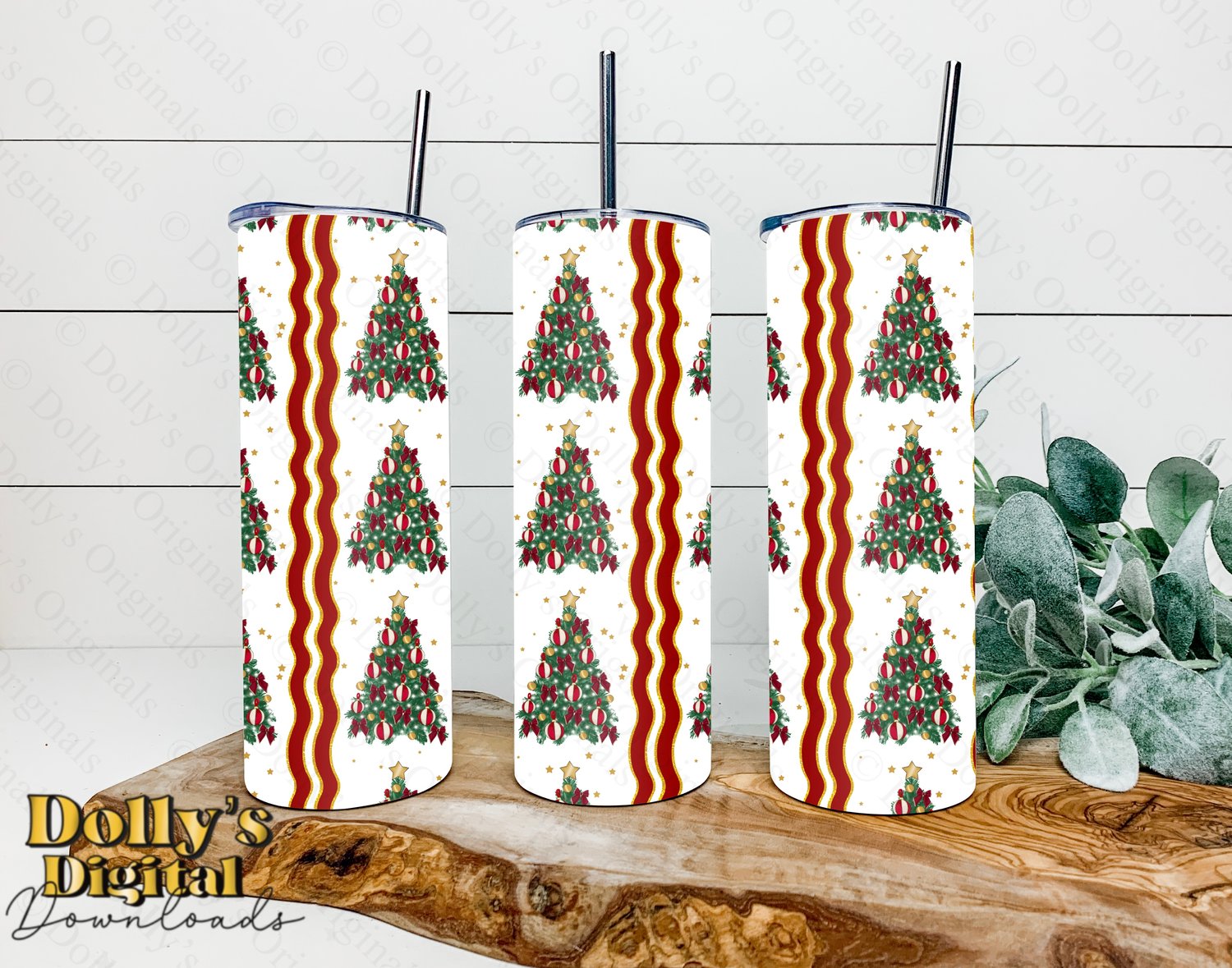 Burgundy, Cream and Gold Christmas Trees Tumbler Wraps