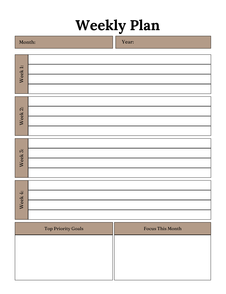 - A weekly plan and planner to structure your days
