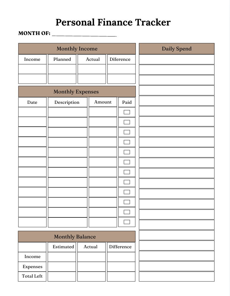 - Monthly budget and spending tracker to keep finances flowing