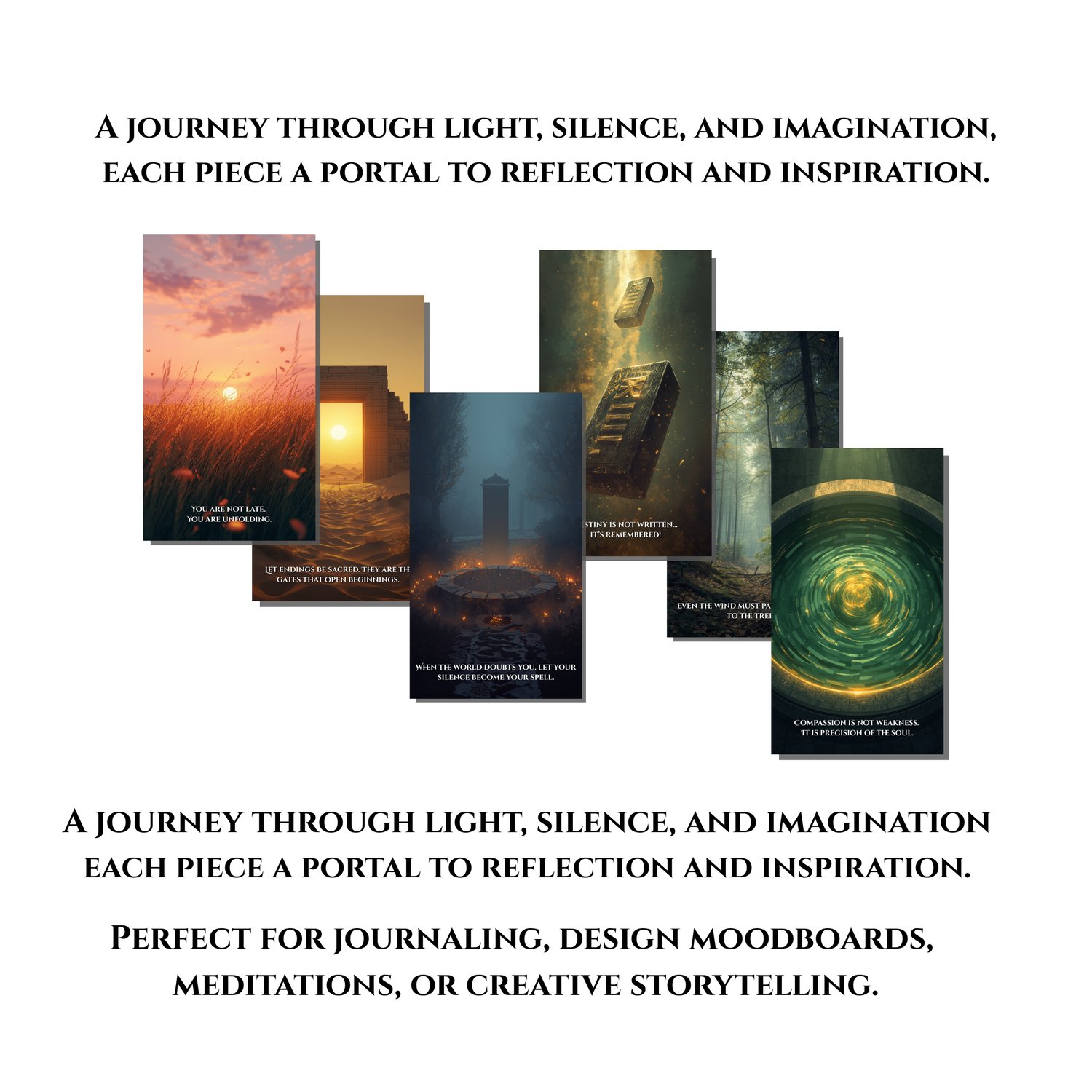 Each piece is a window into the creative soul, perfect for journaling, storytelling, or contemplative design.