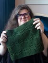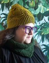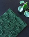 This richly textured cowl features elegant leaves, crisp half-twisted ribbing, and contrasting seed stitch. The leafy motifs combine the occasional cluster stitch, two-stitch cables, and simple lace, but in any round you will only need to use one of these techniques so it’s simpler than it sounds. To complete the set, the companion patterns Greenery Hat and Greenery Mitts are available separately.
