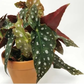 Maranta fascinator is a perfect house or office plant it has striking feathered pattern leaves that have bright red veins. The leaves fold together at night like hands closed in prayer and then unfold in the morning. They are easy to look after they like a humid partially shaded spot and like to dry out between watering.