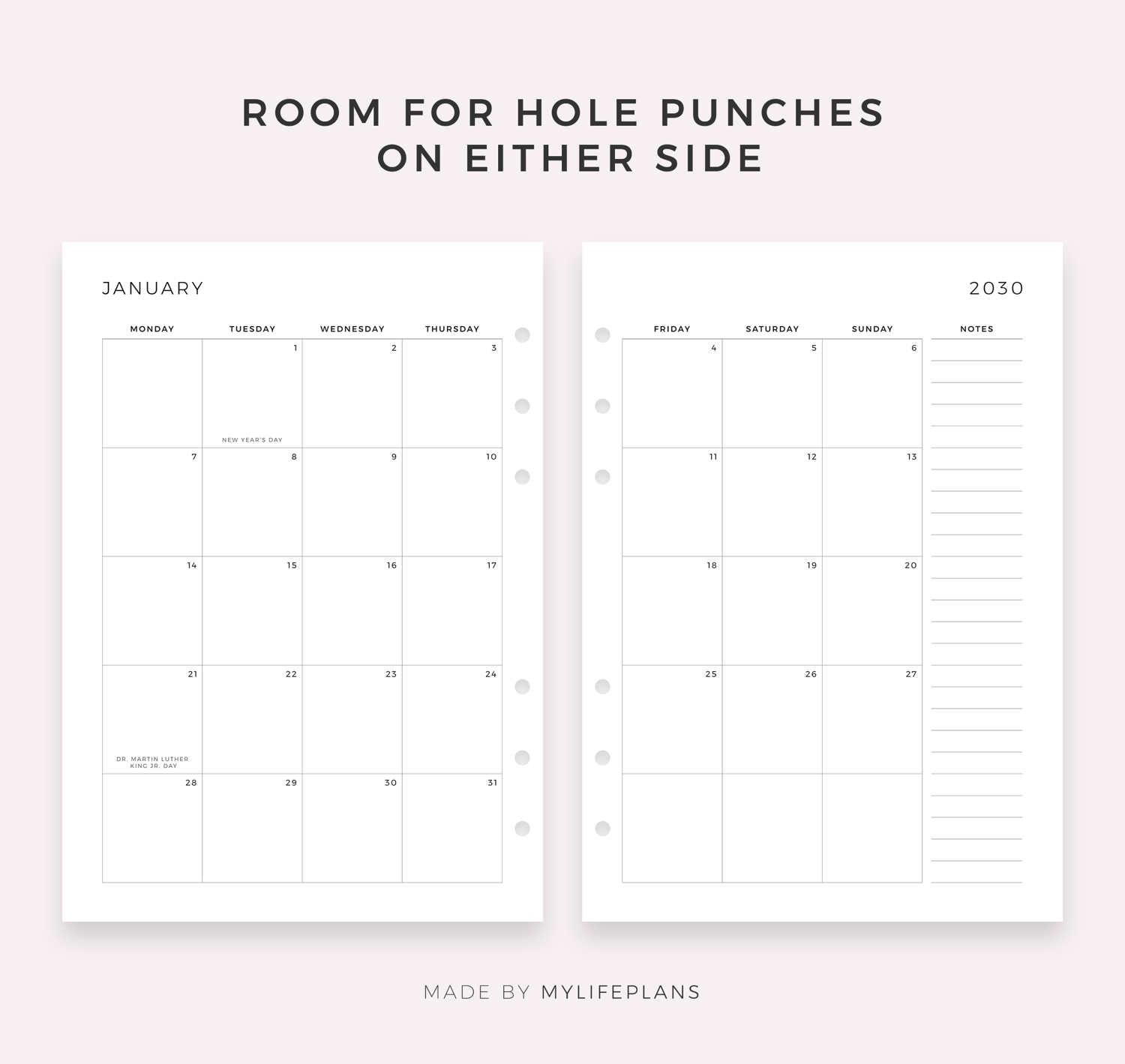 2030 Dated Calendar Inserts Bundle Printable, A4/Letter, Instant Download