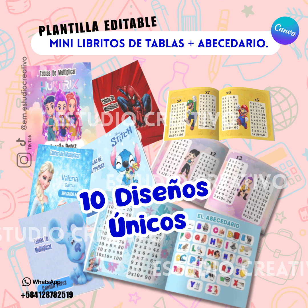 ¿Buscas un recurso educativo, práctico y que a los niños les encante? Te presento nuestra Plantilla Editable en Canva de Mini Libritos 2 en 1: Tablas de Multiplicar + Abecedario Ilustrado.