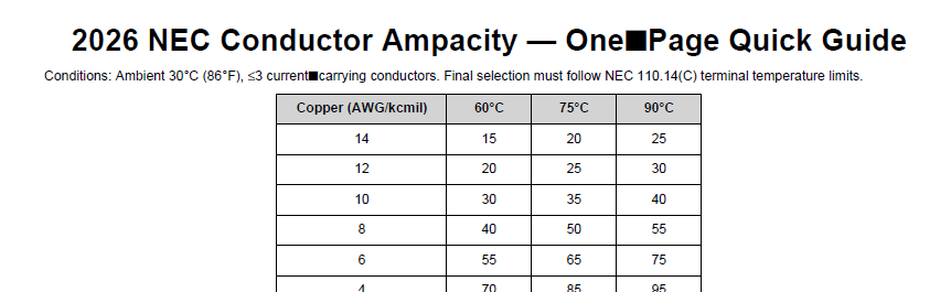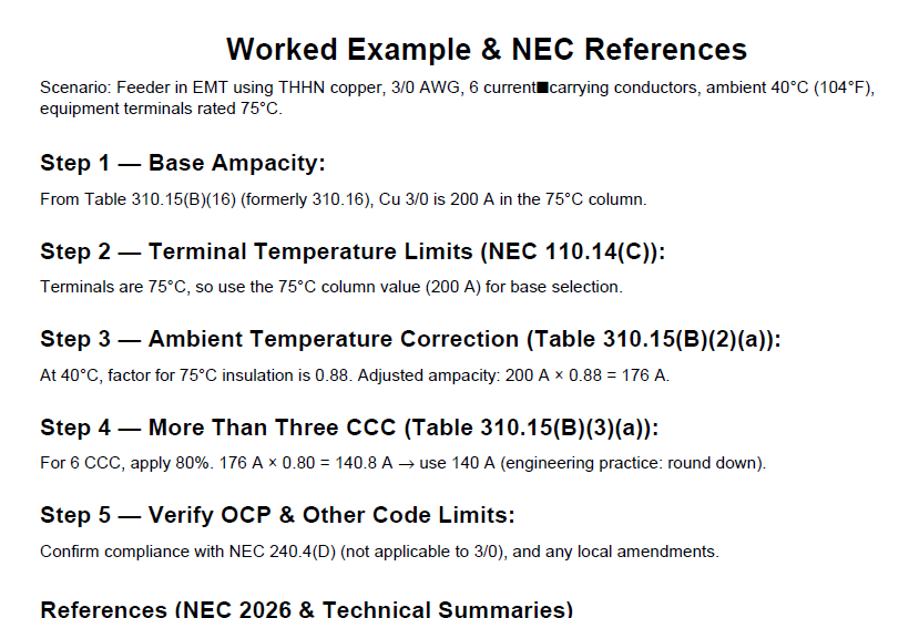 Charts and examples to make sure you get your conductor ampacities sized correctly with deratings.