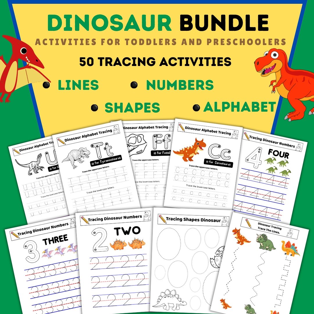 Download today and start practicing with these fun dinosaur tracing activities! 🦖