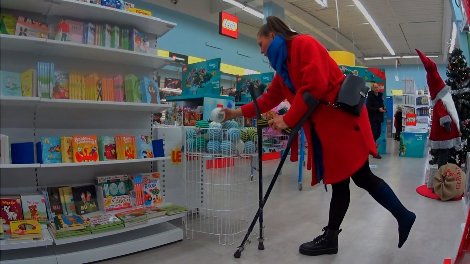 It’s a cold day outside and Isabella’s right leg is broken as well, right now currently casted in a blue SLC. Isabella needs to buy a gift for her friends kids so she has to swing by the toy store. She’s seen crutching slowly inside looking at different toys on every different aisles, there’s so much to choose between, she finds it very hard to pick one. As she figures that out on her own, nice views and some beautiful closeups were done. After crutching around and around in the store, Isabella ended up didn’t get anything. Now she has to make another stop on her way home. Such a bad luck she had.