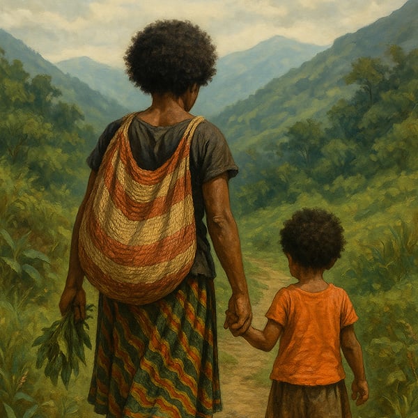 #PapuaNewGuineaMothers #TribalWalk #HighlandsLife #CulturalArt #PNGHeritage #EthnicIllustration #MotherAndChildArt #PNGTraditions #EverydayLifePNG #PNGCulture #PNGDigitalArt #ArtWithStory #MotherhoodJourney