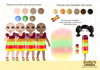 four different skin tones, three eye colours and 6 hair colours)