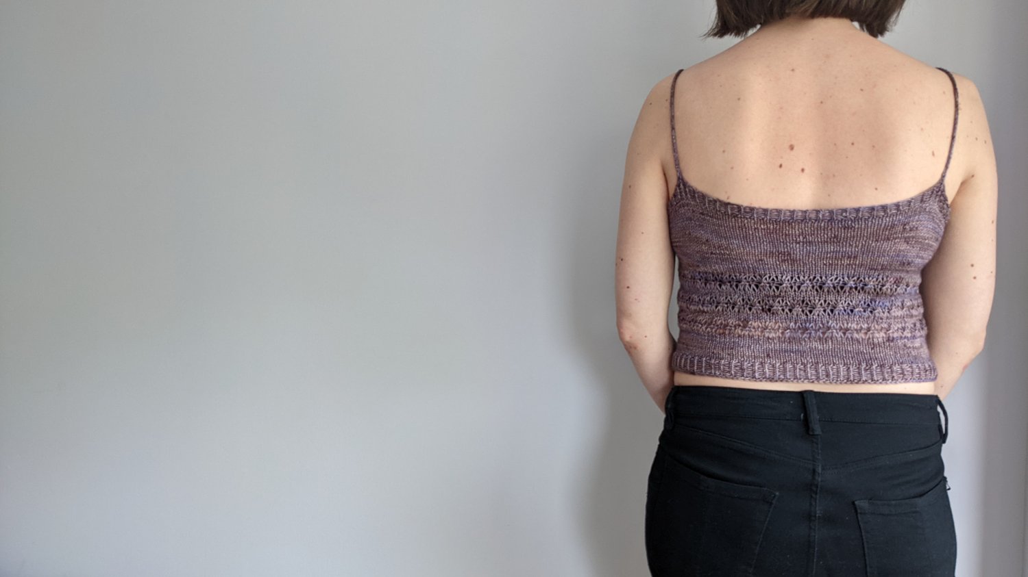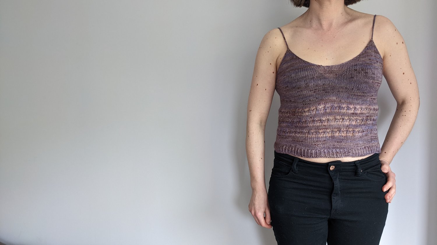 A pretty cami top with an elegant and modern lace pattern. This deceptively simple pattern comes in nine sizes from 70 cm/28” to 150 cm/60” bust and with a choice of three body lengths – short crop, long crop and full length, plus three different strap lengths.