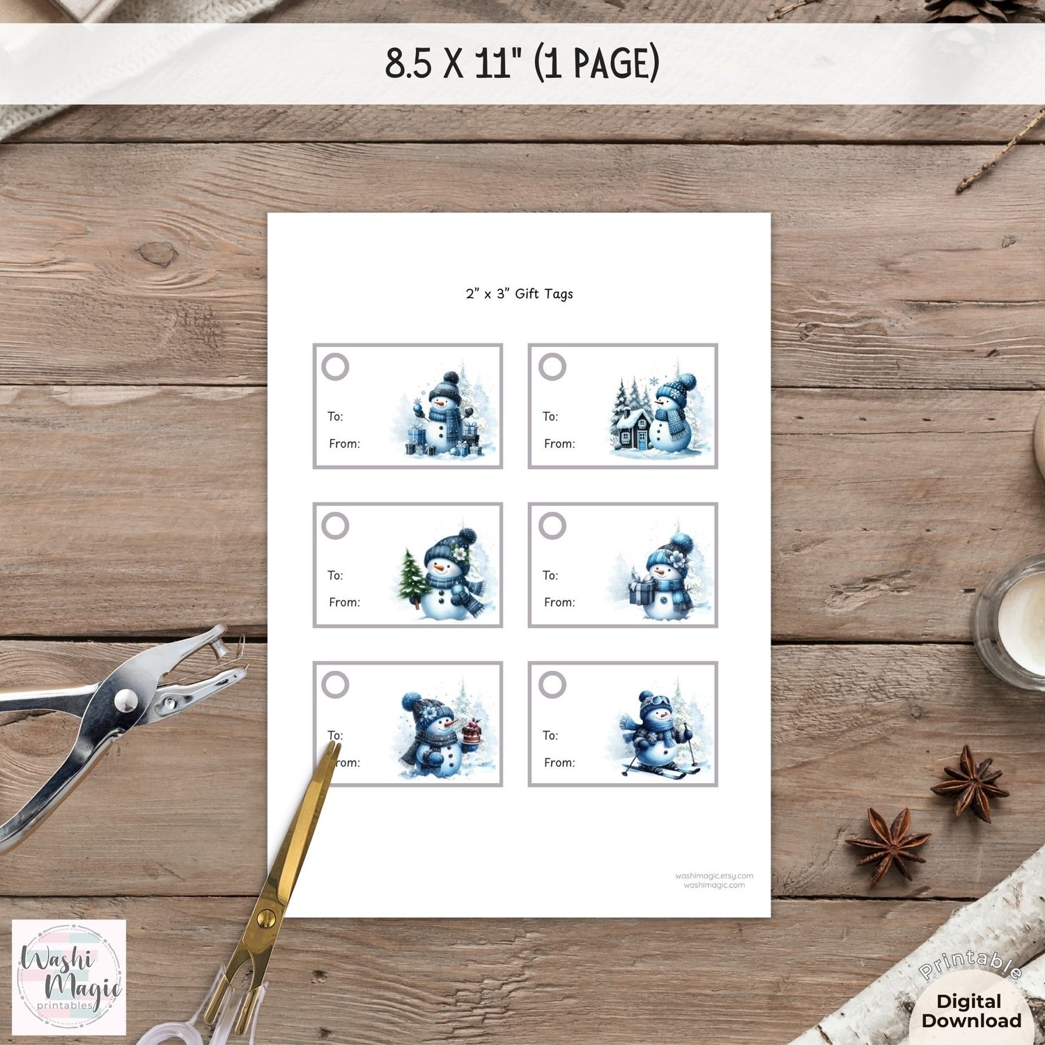Cozy Winter Reading Snowman Themed Bookmarks and Gift Tags Set Printable